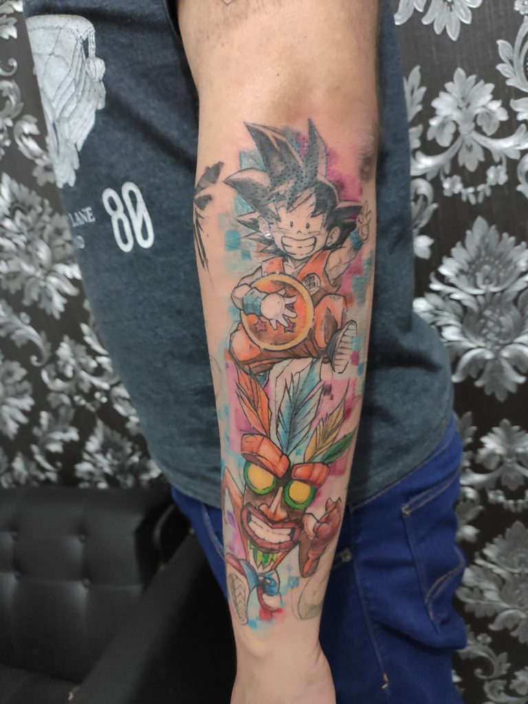 “Desde os 5 anos eu sou apaixonado por desenhar e vivia me metendo em confusão porque nunca perdia a oportunidade de rabiscar o Goku ou o Vegeta nos cadernos da escola. Agora fazem 5 anos que entrei no mundo da tatuagem, e meu estilo mistura os traços de sketch com a pintura aquarelada. Tenho focado meus trabalhos na temática geek, principalmente em animes e mangás, mas também amo fazer projetos de HQs, jogos, música e filmes.”