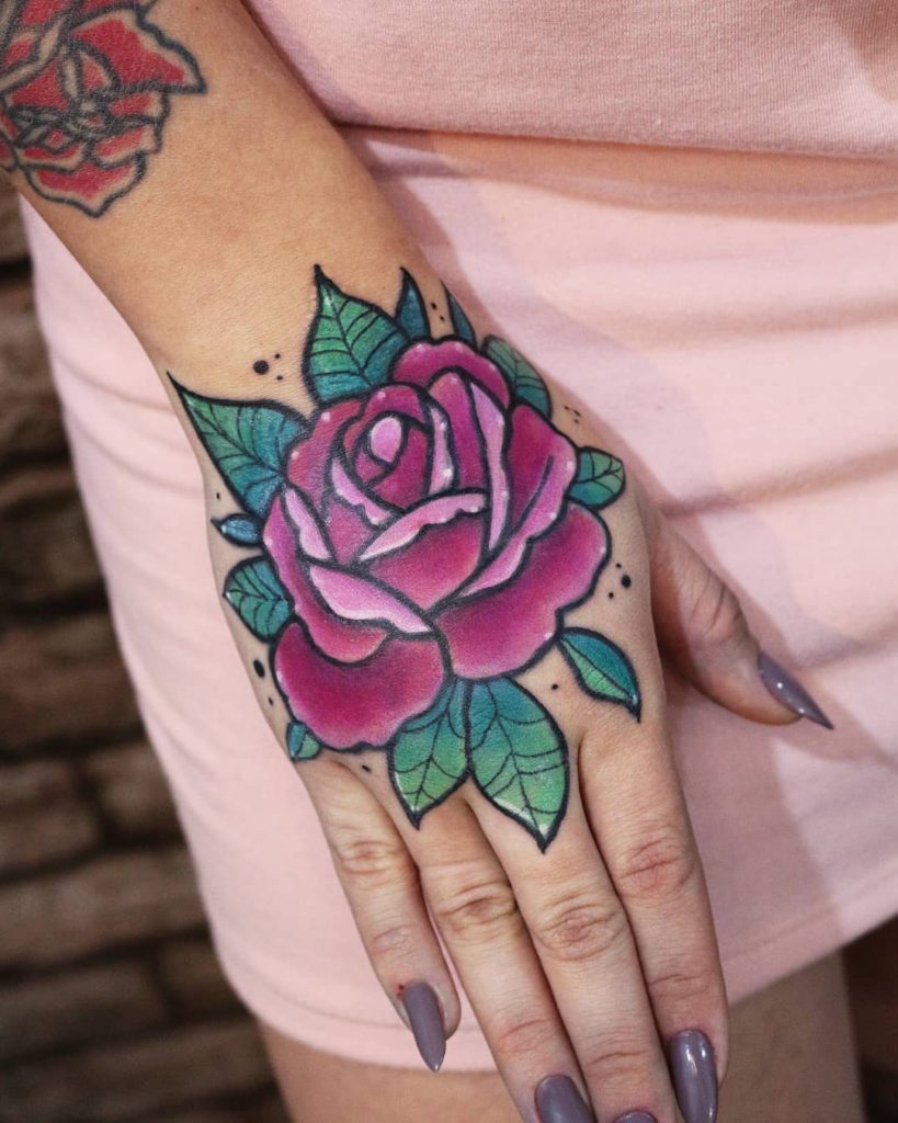 Hoje sou tatuadora há 4 anos e busco cada dia mais desenvolver meu estilo autoral. Gosto de incorporar um traço mais cartoon nas minhas tatuagens e me inspiro muito no estilo kawaii e neo traditional, com muito bold line e o arco-íris todinho!