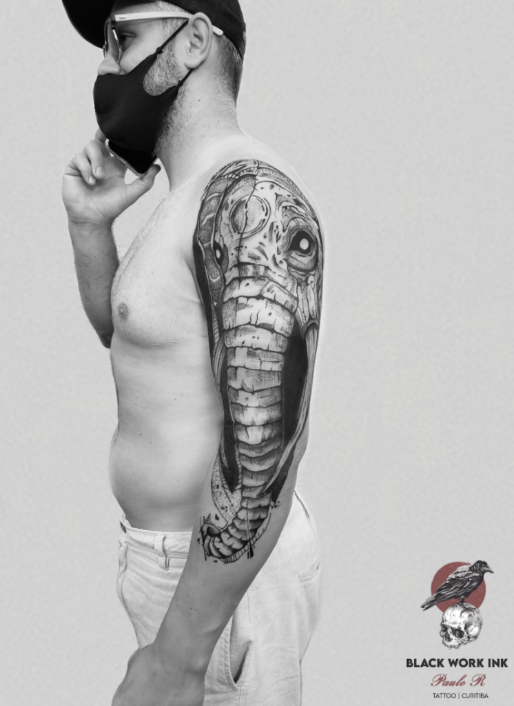 O artista Paulo R “Pé Vermelho” de Londrina, radicado em Curitiba nos contou um pouco sobre sua história na Tattoo: “Sou Bacharel em Computação Gráfica e apaixonado por tatuagem. Da tela do computador para a pele das pessoas foi uma (r)evolução para mim. Essa paixão surgiu na minha pele quando tive a honra de ser tatuado por artistas como Ivan Szazi e Danylo Stefan. Ali, literalmente, sentindo na pele a Maestria destes profissionais, foi amor a primeira agulhada” Adotar o estilo Black Work com uma pegada mais Dark Art foi um caminho natural para um grande fã de Black Sabbath e The Cure brinca Paulo R. “Dedico o melhor de mim para cada cliente que acaba virando um amigo. Não pode ser diferente, pois sei que minha arte estará impressa em seu corpo até o fim de sua jornada. É muita responsabilidade e muito amor envolvido em ser tatuador”