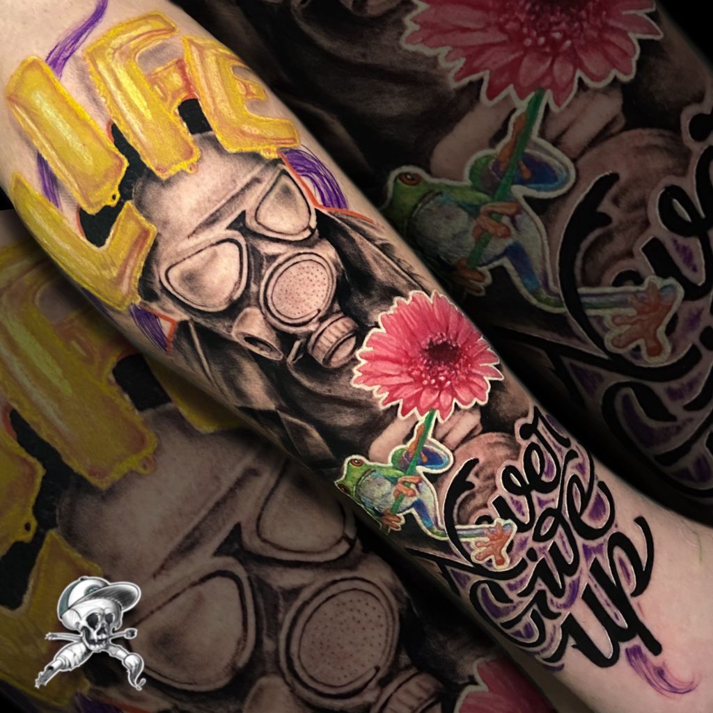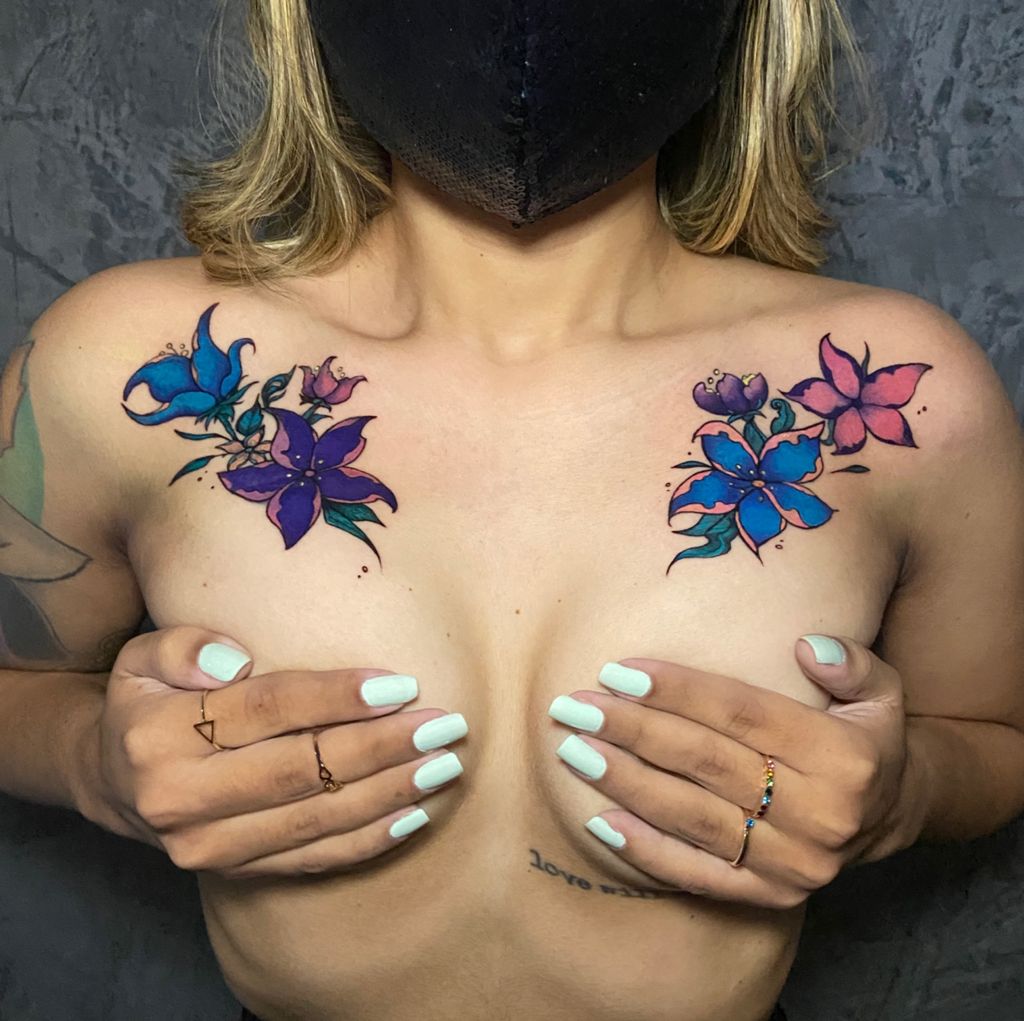 “Tenho clientes em todos os estilos, e estou sempre estudando diferentes referências. Mas sabe que pessoal tem me pedido muita cor, aí entram os realismos de objetos, adesivos, neons e etc… Muitas vezes me procuram para fazer coberturas, novidade para mim, mas tenho gostado muito de fazer e tido bons resultados.”