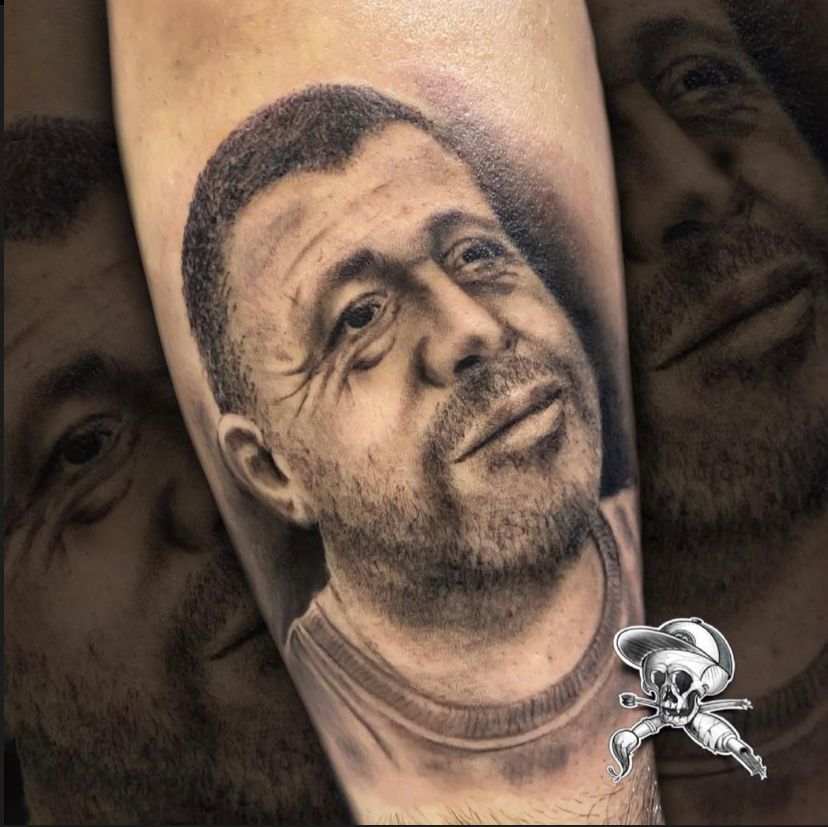 Eu gosto muito da história de 2 Portraits que fiz em um amigo. Ele quis homenagear os pais, um em cada braço, para estarem sempre com ele!