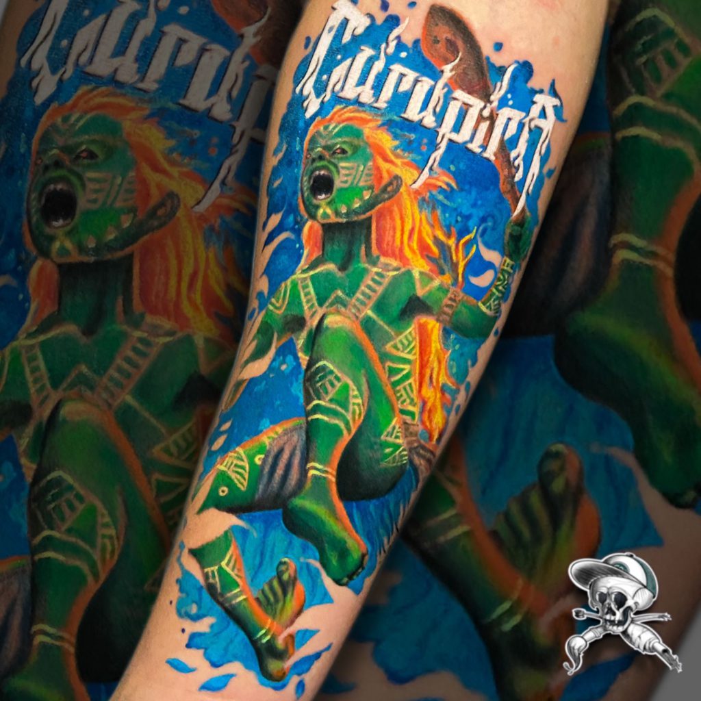 Depois que comecei a realizar mais trabalhos realistas tenho como referência o Tampa, Led Coult e Tony Vilella que já me fizeram parar muito tempo analisando e desvendando os seus processos de pintura e tatuagem.”