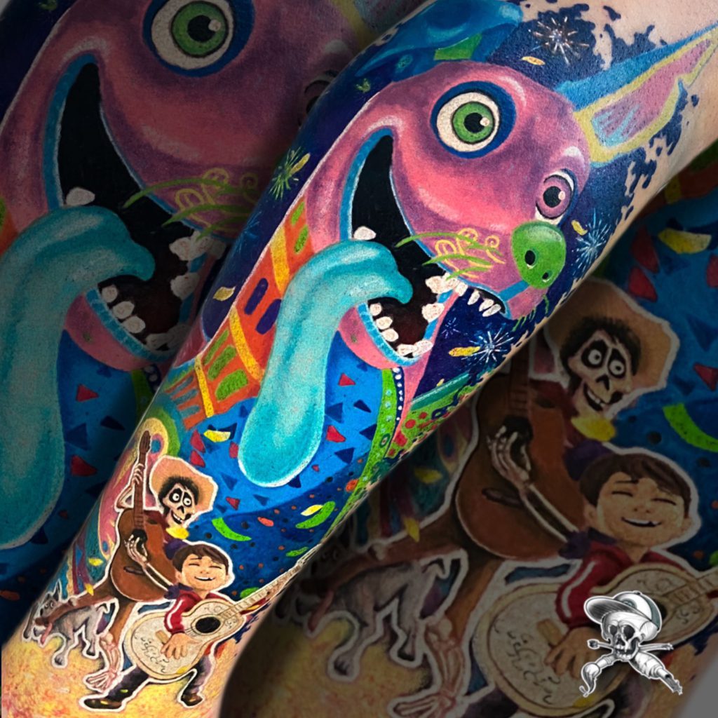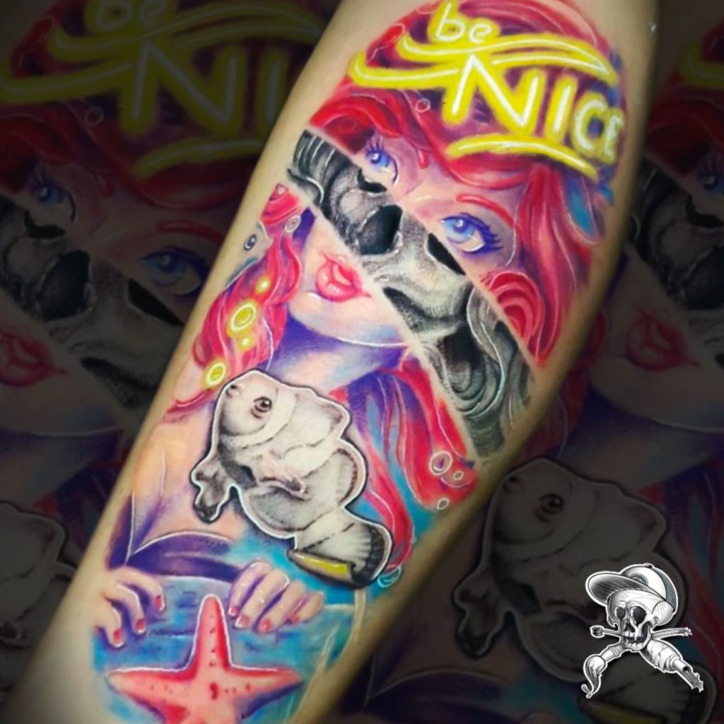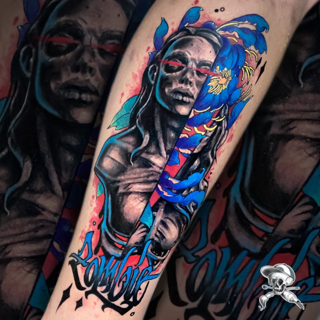 “Tenho clientes em todos os estilos, e estou sempre estudando diferentes referências. Mas sabe que pessoal tem me pedido muita cor, aí entram os realismos de objetos, adesivos, neons e etc… Muitas vezes me procuram para fazer coberturas, novidade para mim, mas tenho gostado muito de fazer e tido bons resultados.”