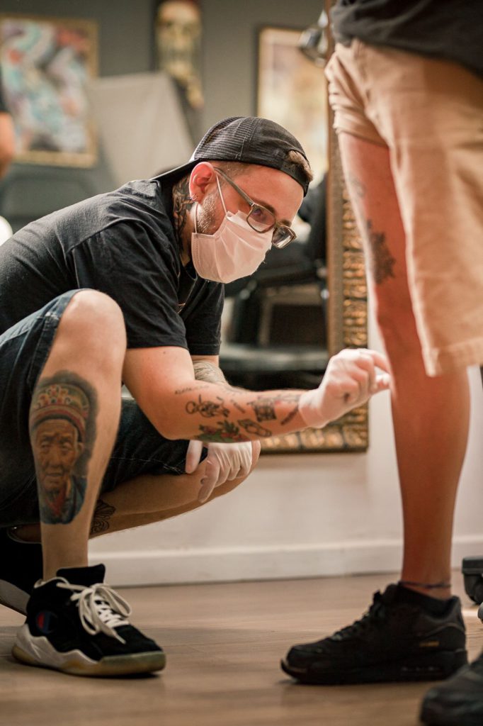 “Com certeza posso chamar os meus clientes de amigos. Todos acabam me encontrando por um propósito, muitas vezes não explicado. Meus clientes são pessoas que curtem arte, com muita história para contar e um pézinho fora da caixa. Grande parte deles vem até mim por indicação, por se identificar com a arte estampada na pele de outra pessoa, e curtir o meu trabalho. Durante a tattoo, conversamos de tudo, viagens, família, histórias, e sempre temos em pauta o significado daquela arte para a pessoa e o que ela representa.”