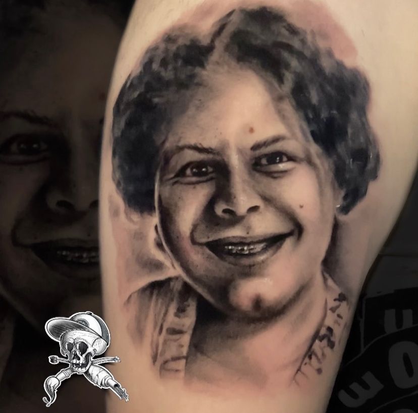 Eu gosto muito da história de 2 Portraits que fiz em um amigo. Ele quis homenagear os pais, um em cada braço, para estarem sempre com ele!