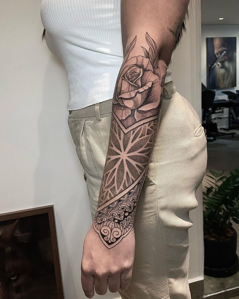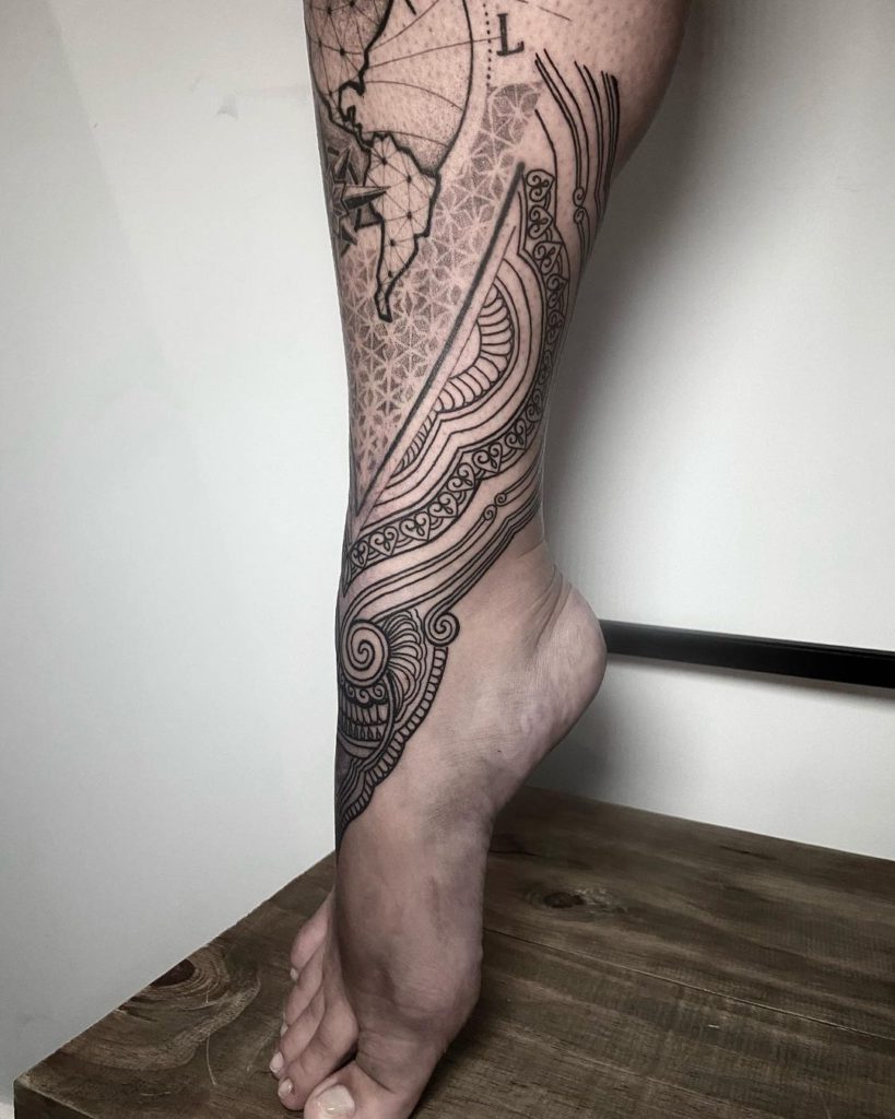 Inclusive esse primeiro tatuador que abriu as portas pra mim, foi o Rodrigo Donadon. Ele é um grande nome do tribal hoje.