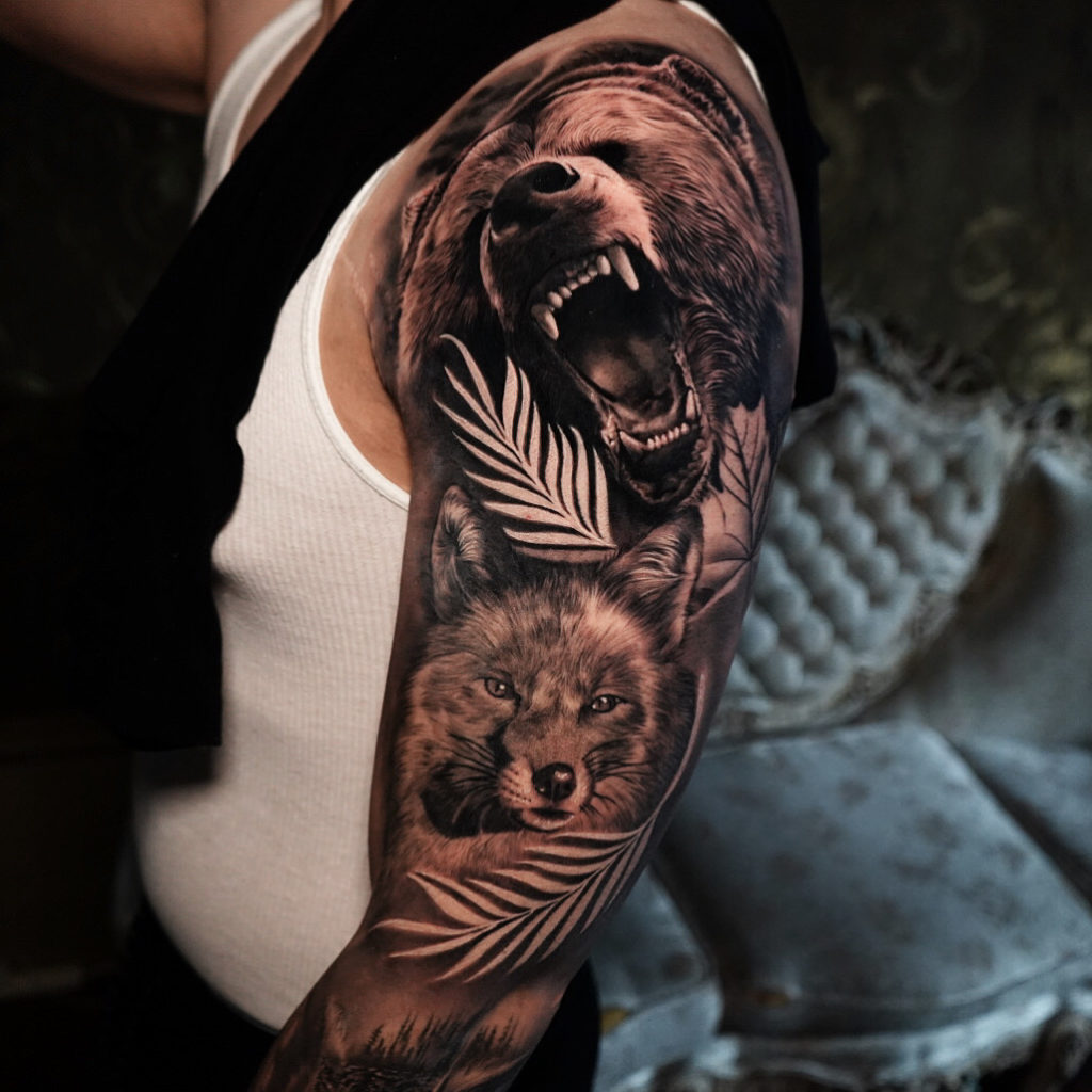 Obrigado, acredito o que torna meu trabalho único porque eu realmente faço projetos personalizados e aprendo e pego o melhor de cada artista que conheci no caminho mesmo lidando com muitos clientes que querem fazer a mesma tatuagem que o do colega e me limitando em questão de arte.