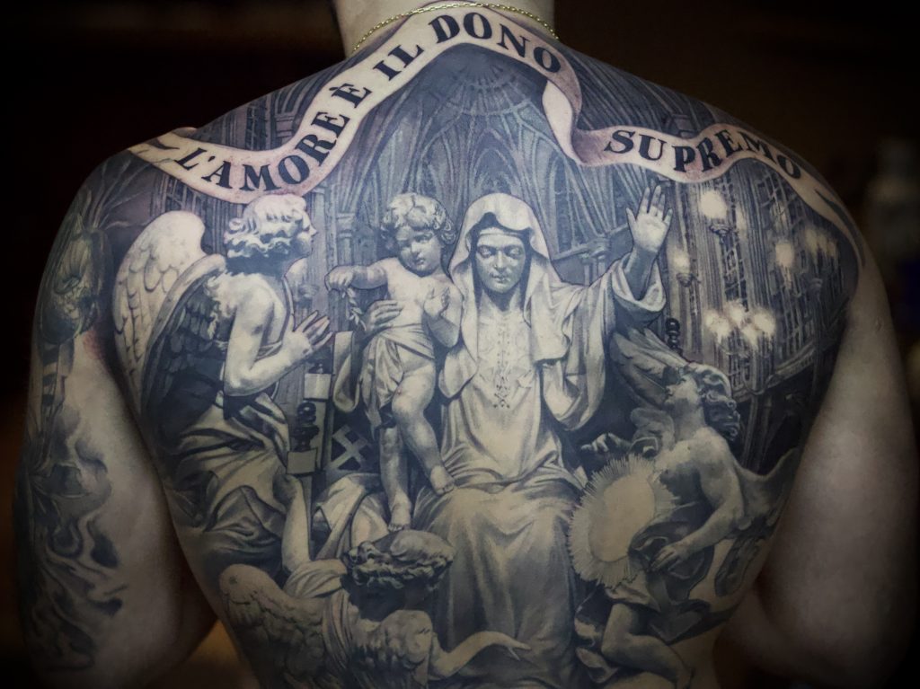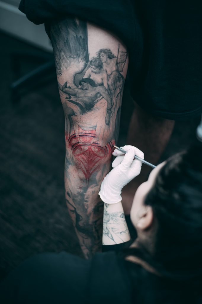 “Meu trabalho é influenciado por grandes mestres como Van Gogh, Edward Munch e Michelangelo”, explica Jezz. “Embora a técnica da tatuagem seja muito diferente da pintura, minha paixão por ambas as formas de arte evoluiu em paralelo, permitindo-me combinar os dois mundos em meus trabalhos.”