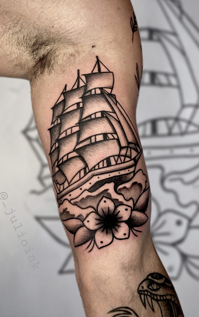 Localizado na cidade de Caieiras, em São Paulo, este dedicado e multifacetado tatuador vê em cada criação uma oportunidade de se superar, de estar sempre em movimento. “Minha inspiração é poder me superar e estar sempre me descobrindo como artista. Sou obcecado pela minha evolução. Meu trabalho é uma extensão minha ou eu sou uma extensão do meu trabalho, é complexo, mas sinto que tudo que eu faço na arte é um pedaço meu,” comenta Júlio.