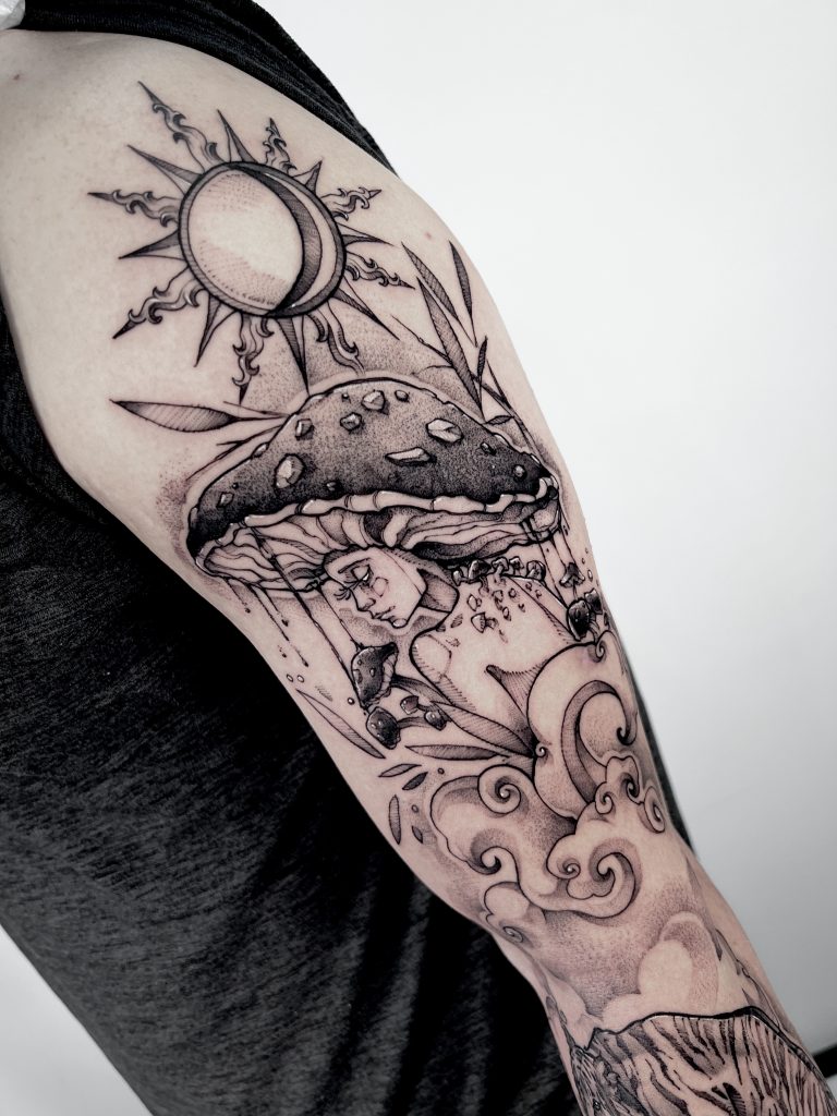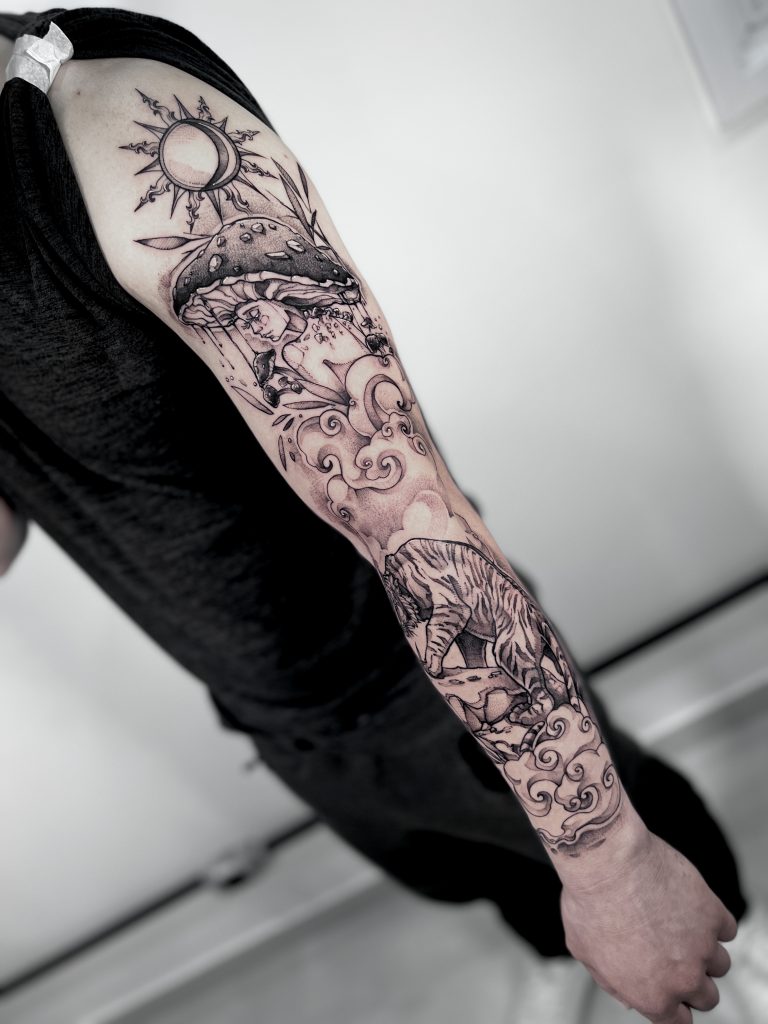 R: Eu costumo dizer que tive 2 inícios. O primeiro foi entre 2003 e 2005 quando eu tive contato com tatuagem em um estúdio perto da minha casa, em Salvador/BA. E o segundo foi em 2019, quando decidi levar a sério o sonho antigo.