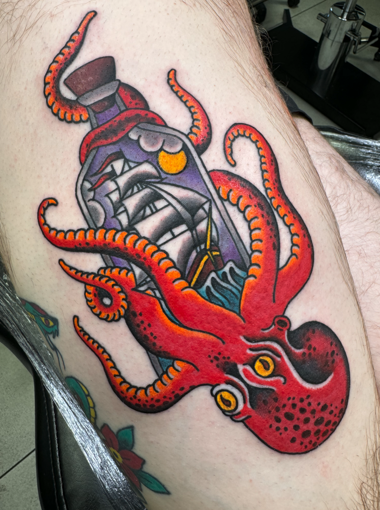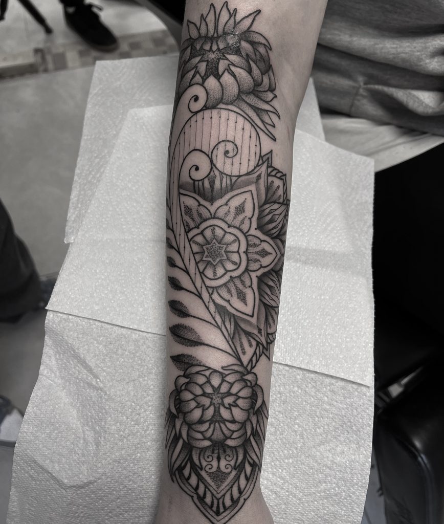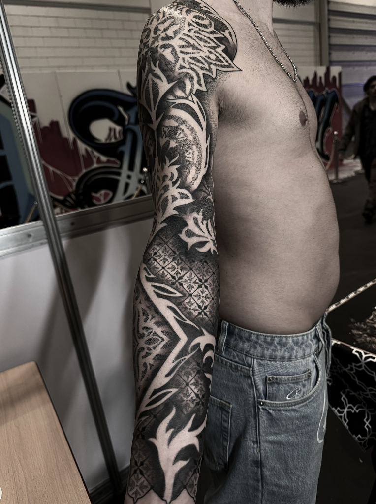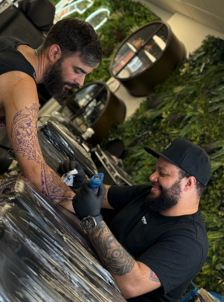 Mas nem tudo foram flores. Tatuar fora do Brasil trouxe desafios, especialmente na Alemanha, onde a barreira do idioma complicou as primeiras interações com os clientes: “Foi muito complicado me conectar com o cliente de início. Depois de um tempo, as coisas foram se encaixando, mas no começo foi bem difícil.” Ainda assim, esses obstáculos serviram para enriquecer seu trabalho e perspectiva.