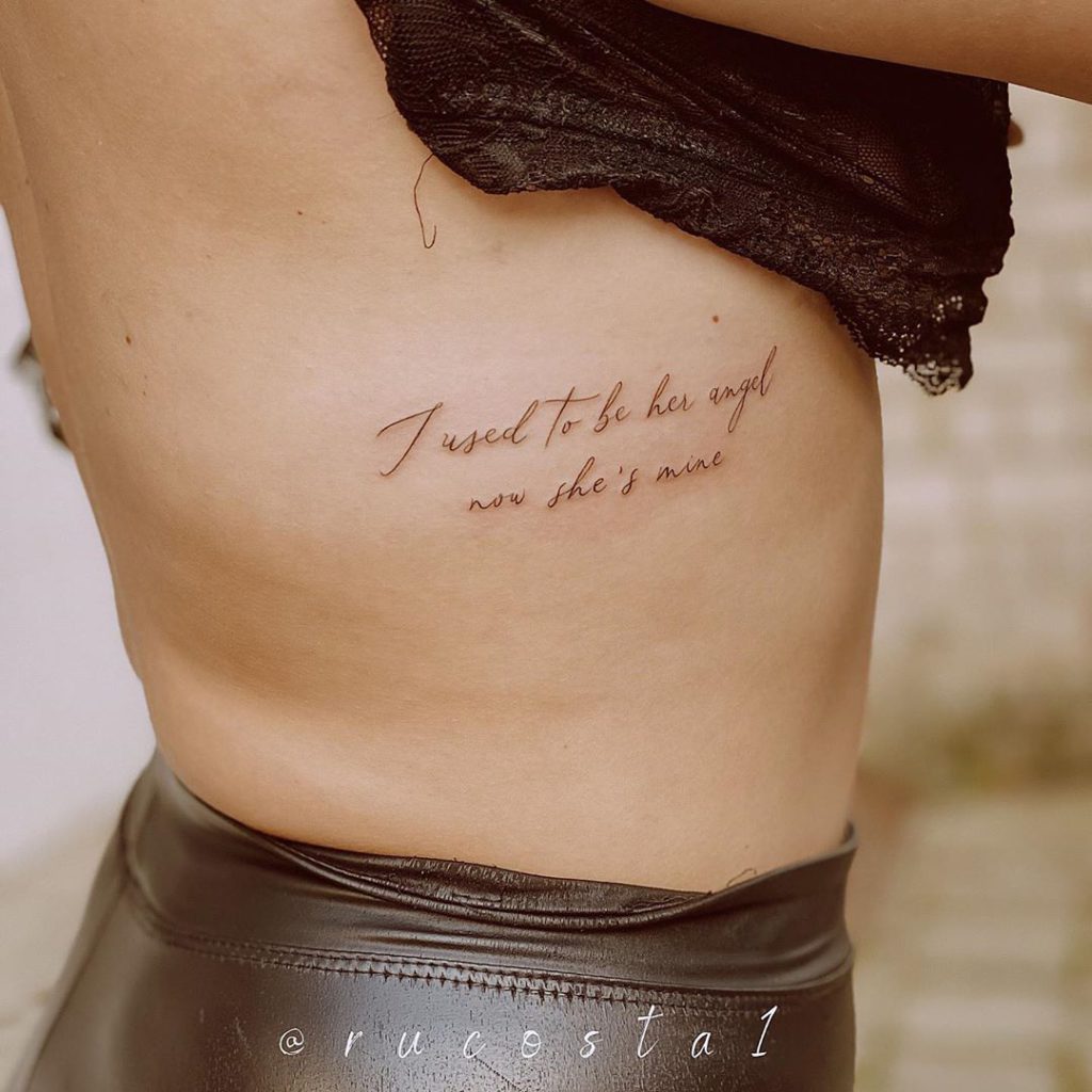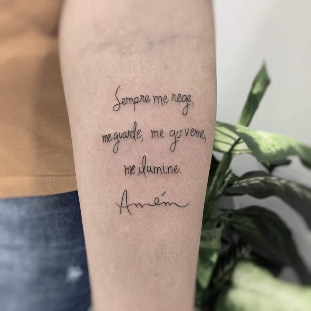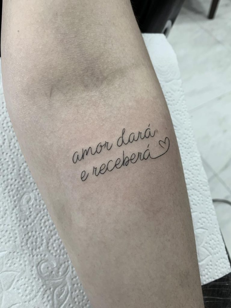 “As tattoos escritas se encaixam tão bem no corpo que parecem fazer parte dele, é como se elas sempre estivessem ali. Por todos esses motivos, as escritas delicadas são as queridinhas de boa parte dos tatuados e dos não tatuados também.”