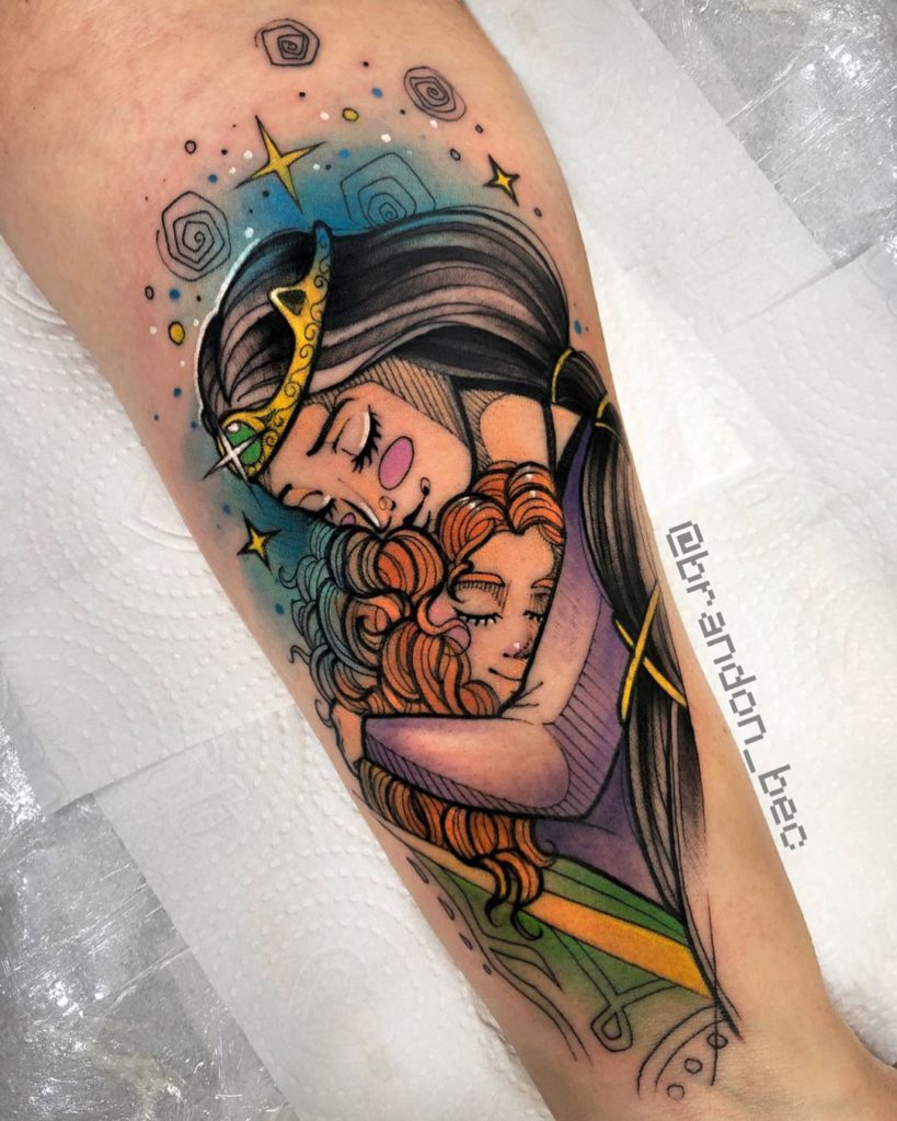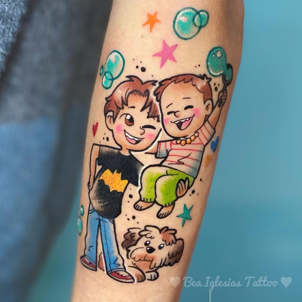 As mamães tatuadas também podem escolher uma foma de representar o amor pelos seus filhos com um filme que gostem de assistir juntos ou até mesmo fazendo os seus pequenos em versão cartoon!