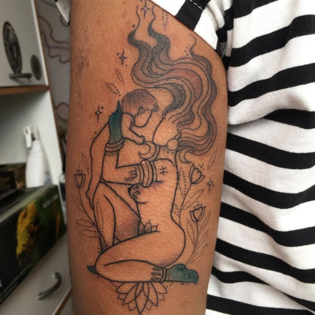 Os momentos da gravidez e amamentação também podem ser uma ótima inspiração para carregar a sua tatuagem de amor e ternura.