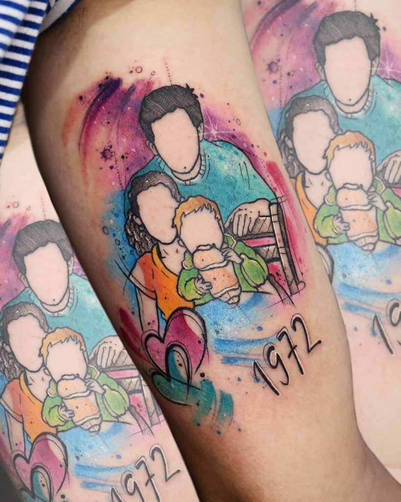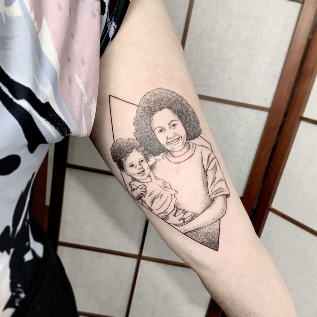 Uma foto de família é sempre uma boa ideia pra criar uma tatuagem única e cheia de significado. Você pode escolher a sua foto favorita e permitir que o seu tatuador crie algo estilizado especialmente pra você!