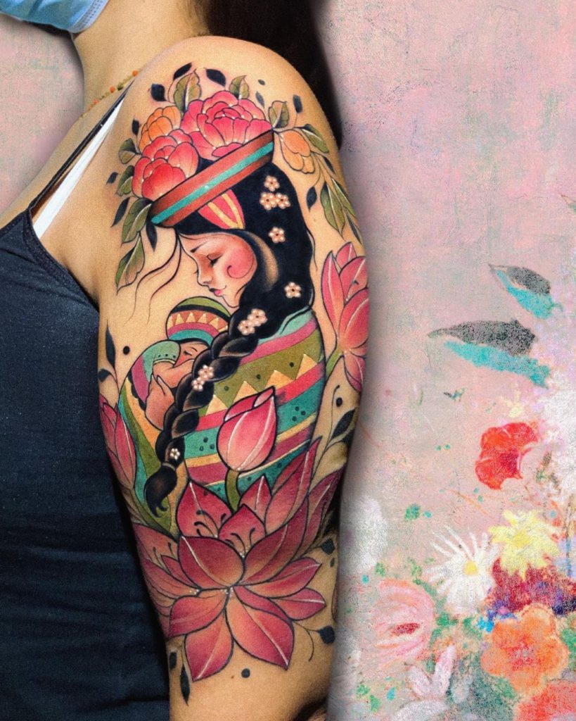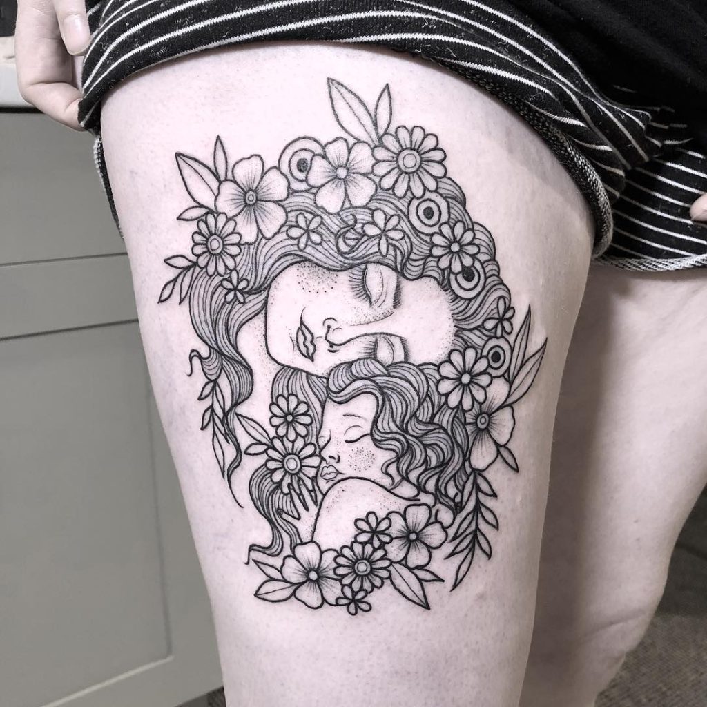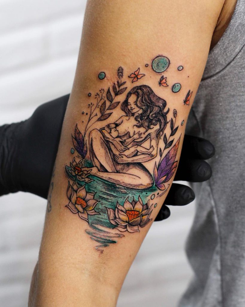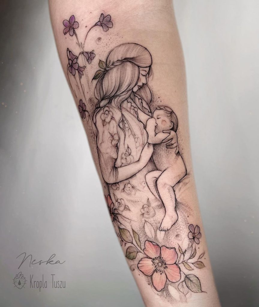 O conforto de um abraço de mãe pode ser transformado em tatuagem de várias formas, desde um delicado fineline até um projeto super colorido!