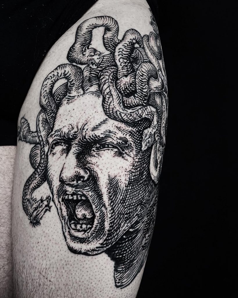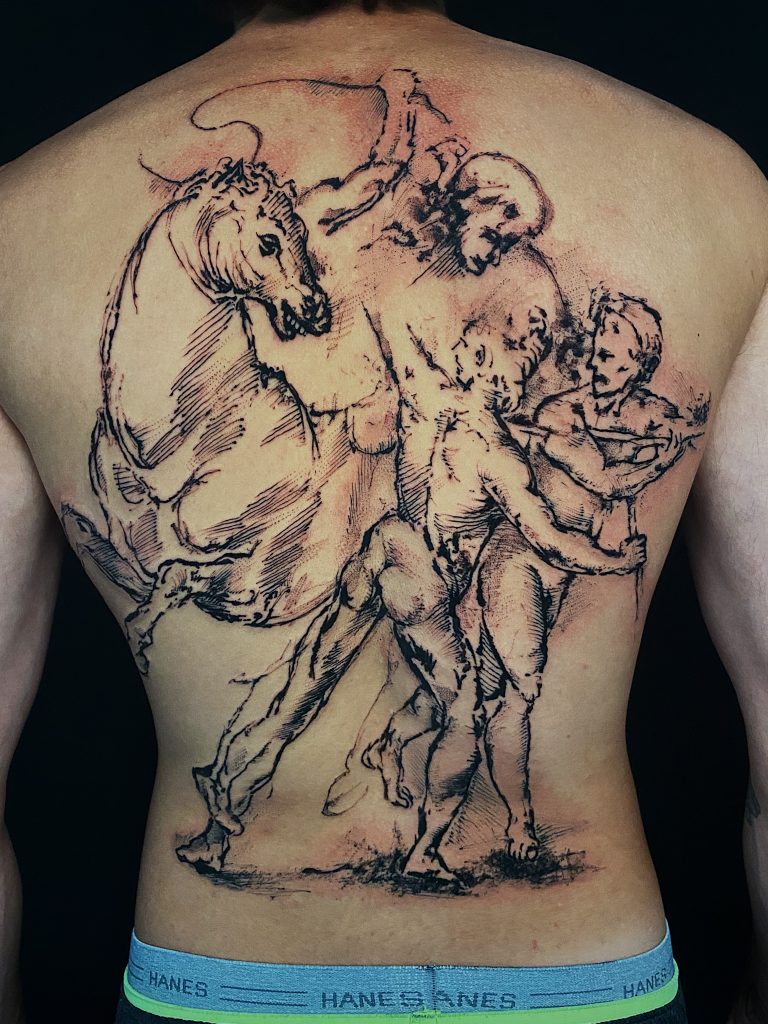 Outro desafio foi a pressão para se estabelecer em um mercado competitivo e, ao mesmo tempo, fiel à sua visão artística. “No início, muitos me viam como um tatuador de pontilhismo, mas eu nunca quis me limitar a um estilo. Sempre enxerguei o pontilhismo como uma técnica que fazia parte do meu processo criativo, mas não como meu estilo definitivo”, explica. Com o tempo, Julio começou a explorar novas formas de arte, incorporando hachuras e diferentes tipos de linhas em seus trabalhos.