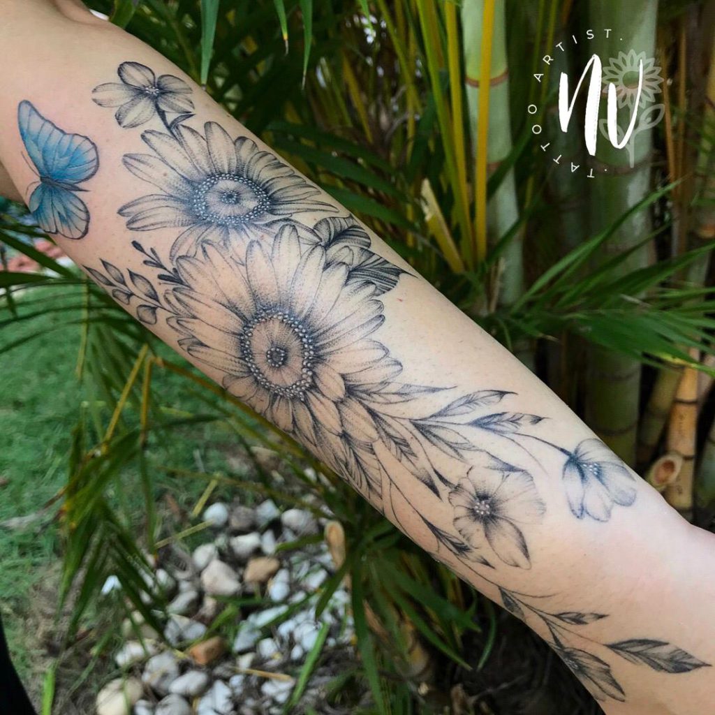“Com certeza os florais estão em primeiro lugar. Digamos que 90% dos meus clientes são mulheres e elas quase sempre optam por artes delicadas e eu confesso que amo”