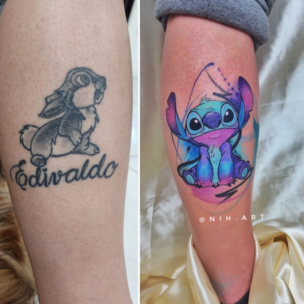 Nih é notável por sua habilidade em fazer reformas e coberturas de tatuagens. Ela trabalha cuidadosamente com cada cliente para criar um novo design que ressignifica e revitaliza a tatuagem original.