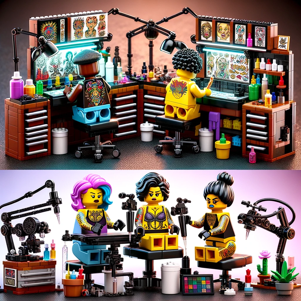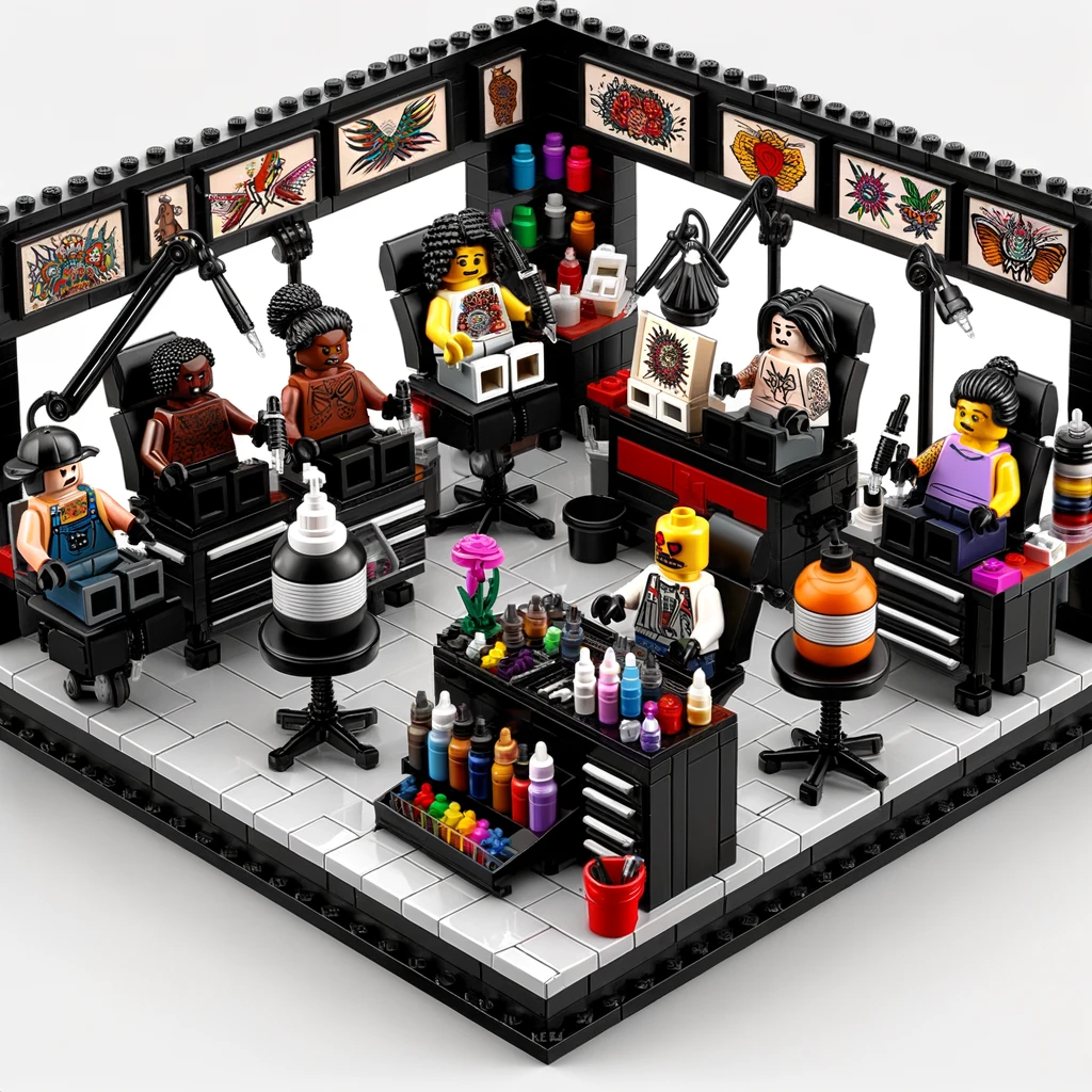 Criar sets de LEGO temáticos, como máquinas de tatuar ou estúdios de tatuagem em miniatura, é uma forma lúdica e inovadora de homenagear a arte da tatuagem, aproximando esses dois mundos através do compartilhamento de valores fundamentais como a criatividade, a expressão pessoal e a comunidade.