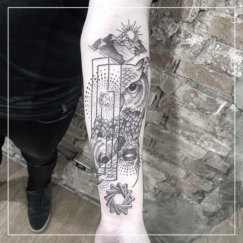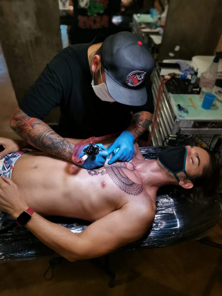 “Acredito que a Tatuagem é uma troca bem intensa entre o que o cliente deseja eternizar em seu corpo e os caminhos que eu posso oferecer, não existe o ‘impôr algo’ de nenhum dos lados. O processo criativo vem aí, juntando as ideias e tudo vai tomando forma nessa troca de energia.”