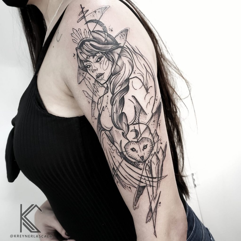 Kreyner La Scala é tatuador há 8 anos e ‘caiu’ na profissão de tatuador por acaso: ele é formado em Engenharia Ambiental e largou tudo para se dedicar à tatuagem. Mas não é nada por acaso que produz suas artes: dono de um estilo único e completamente autoral, o artista produz tatuagens holísticas.