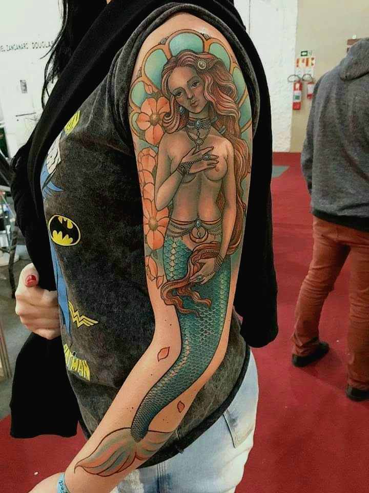 “Tenho 35 anos e sou tatuadora há 13 anos. Sempre desenhei desde criança, comecei porque amava animes e mangás, entrei no mundo da tatuagem com 22 anos, amo minha profissão, faço vários estilos, mas faz cerca de 3 anos que comecei a estudar mais o estilo neo tradicional que sou apaixonada e que acabei ganhando alguns prêmios em convenções presenciais e on-lines. Minhas referências são na Art nouveau e arquitetura antiga.”