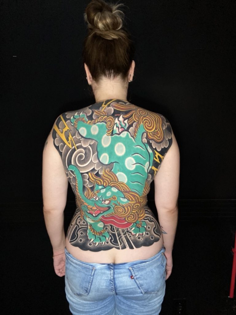 “Estar todos os dias perto de outros artistas fez com que eu me dedicasse cada vez mais nas minhas tatuagens, até que me senti confiante o suficiente para participar do meu primeiro evento de tattoo, onde consegui ganhar um prêmio na categoria Melhor Oriental.“