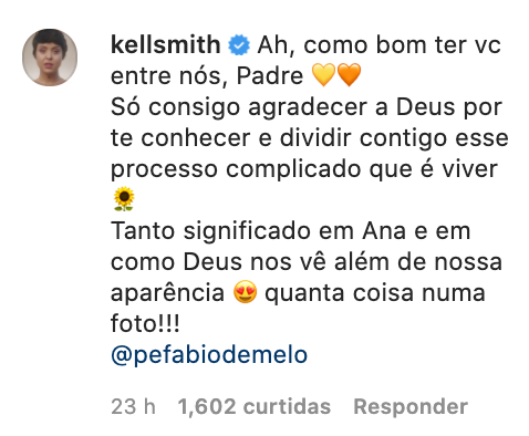 Kell Smith lembrou o quanto não importa as opiniões alheais, mas o significado que tem por trás da história e homenagem que o Padre fez com a sua nova arte, e para a fé, Deus vê além da aparência: