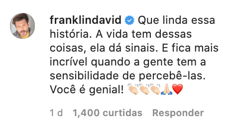 Franklin David fala sobre a sensibilidade do Padre Fábio de Melo sempre reconhecer momentos sutis. Acho que a gente deveria fazer mais isso, né?
