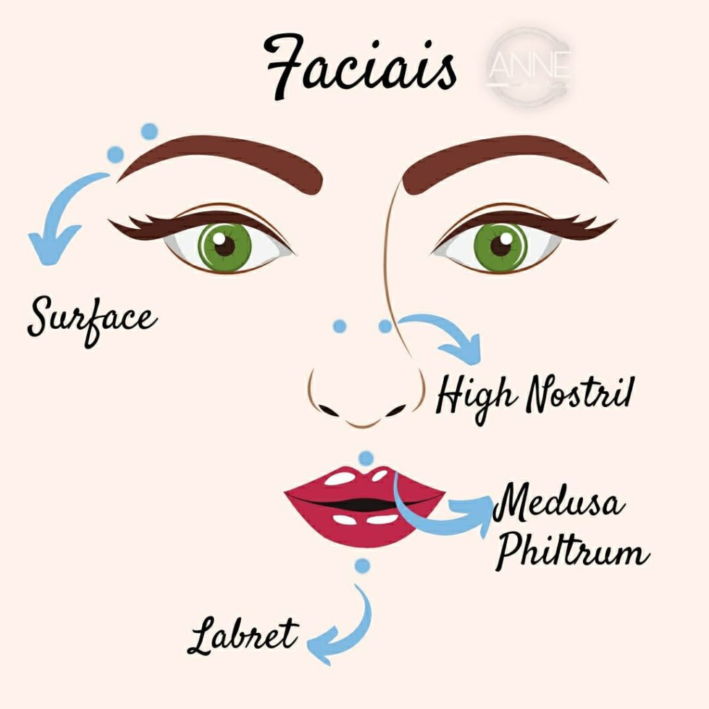 A variedade e possibilidades de perfurações é enorme, mas para facilitar seu orçamento de piercing, montamos algumas ilustrações de perfurações auriculares e faciais para você aprender os nomes!