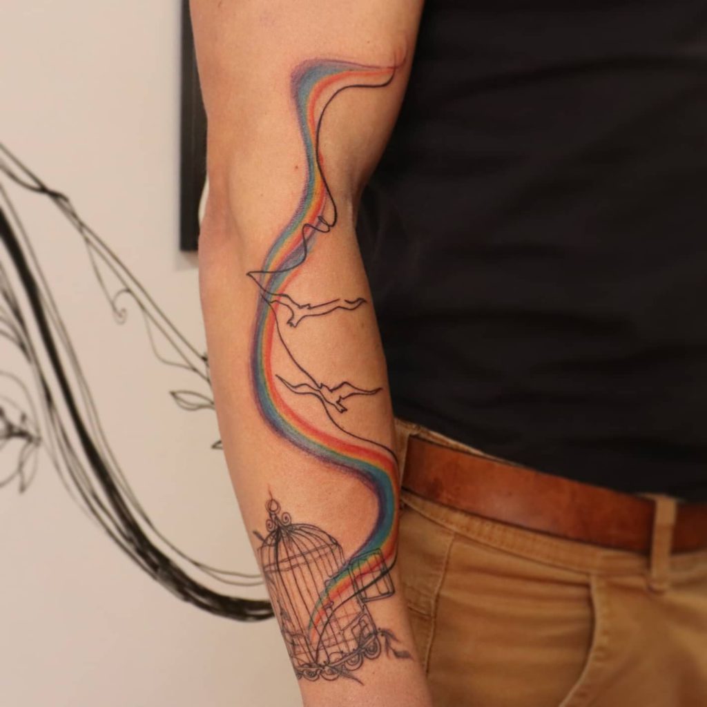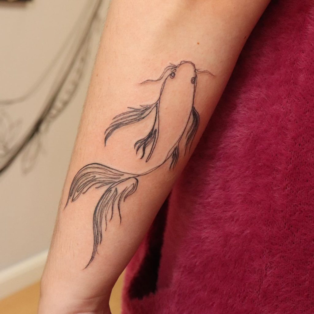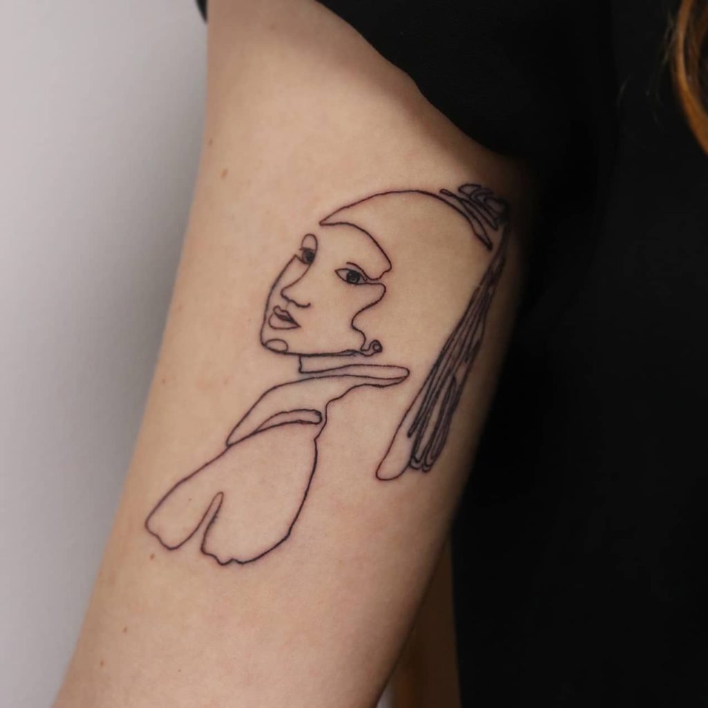 Na tatuagem acompanho perfis de tatuagem que também criam em one line art, como a @jiotattoo e a @honeybadger__tattoo, e muitos outros de estilos que me inspiram estudar novas técnicas e mistura-las ao meu traço.