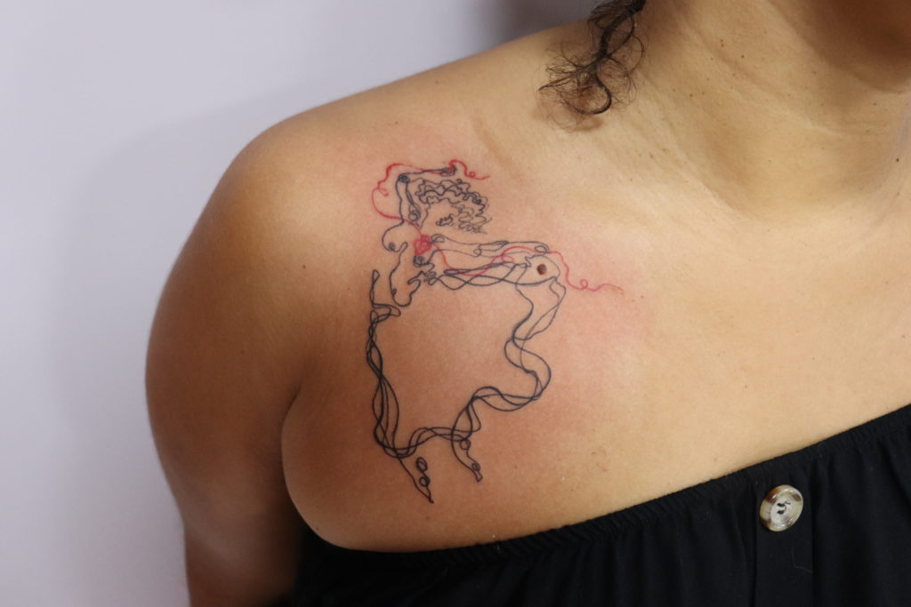 Comecei a estudar obras similares e descobri que o que eu fazia intuitivamente poderia ser classificado dentro de alguns estilos artísticos: desenho gestual, one line art (arte em linha única) e arte minimalista. Hoje tenho uma identidade visual própria que aplico em tatuagens, pinturas e murais, e sigo estudando artes e aprimorando meu traço.