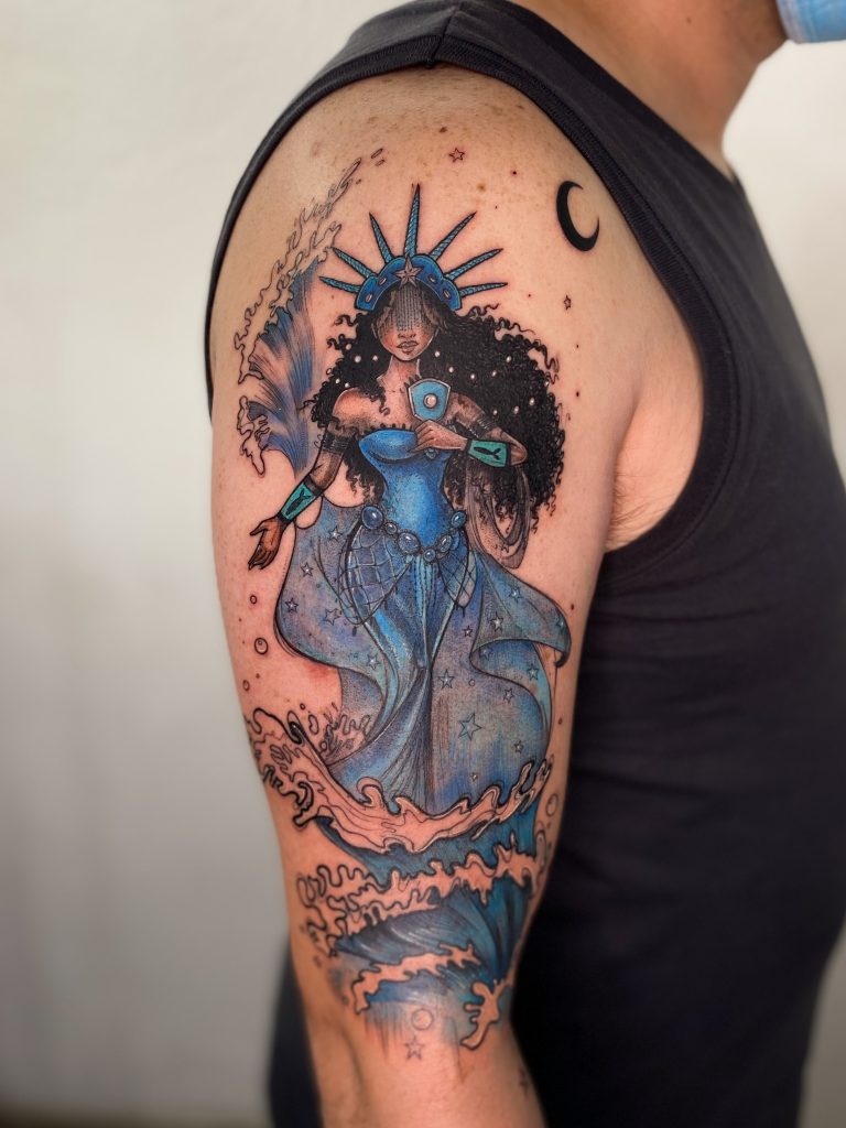 “Meu trabalho é inspirado em ilustração. Meu processo é transformar a ideia de cada cliente em uma arte com o meu estilo próprio”, explica Robson. “Cada pessoa que eu tenho a oportunidade de tatuar sai do estúdio com uma arte única, que representa algo importante na vida dela.”