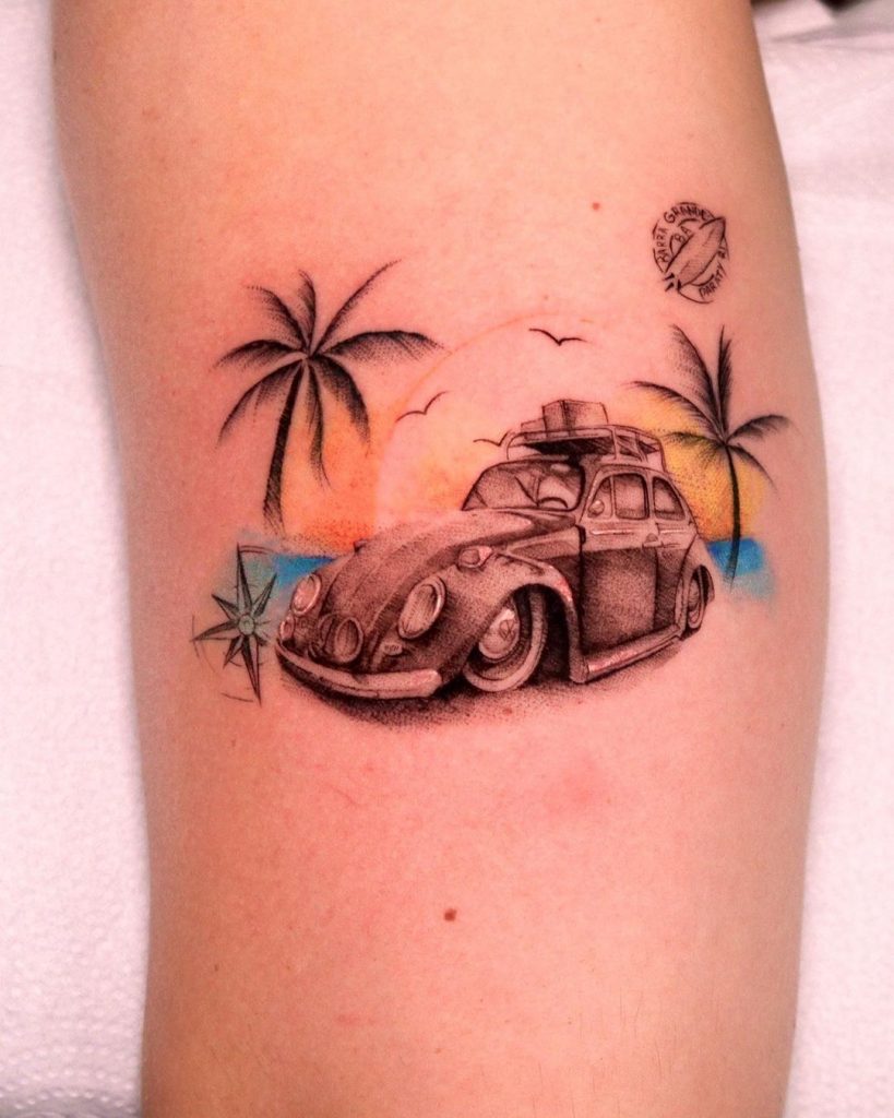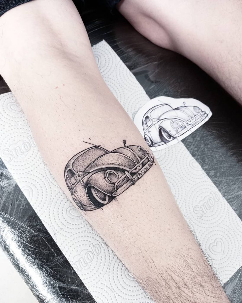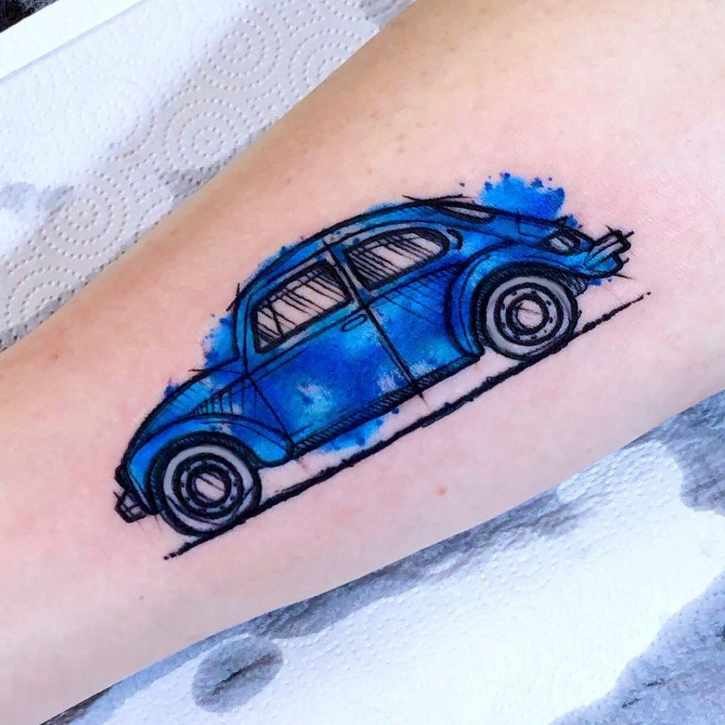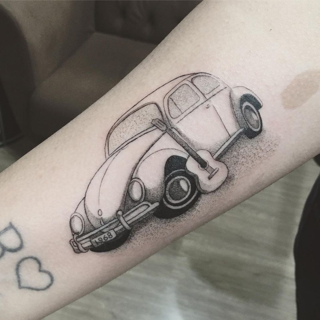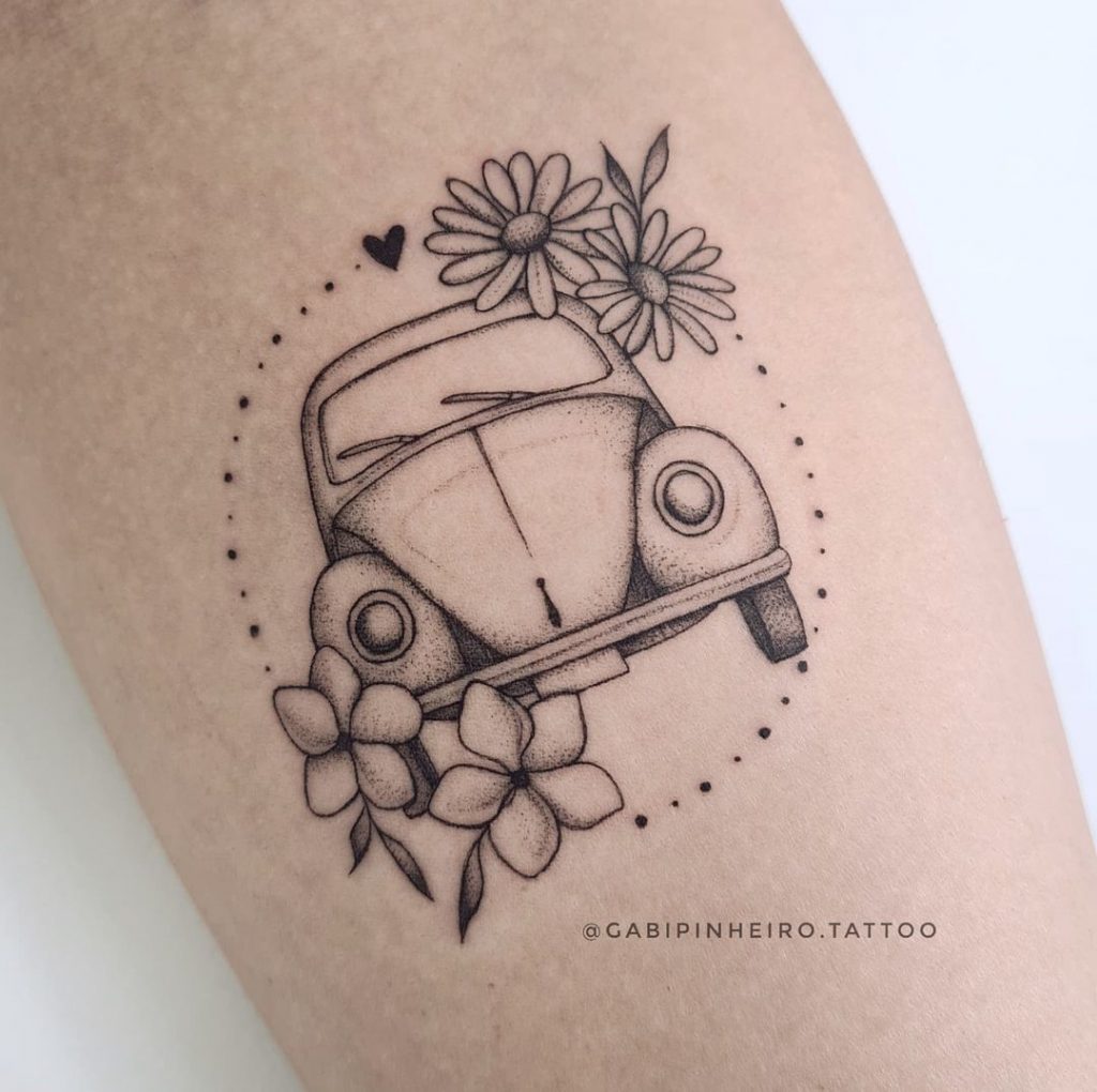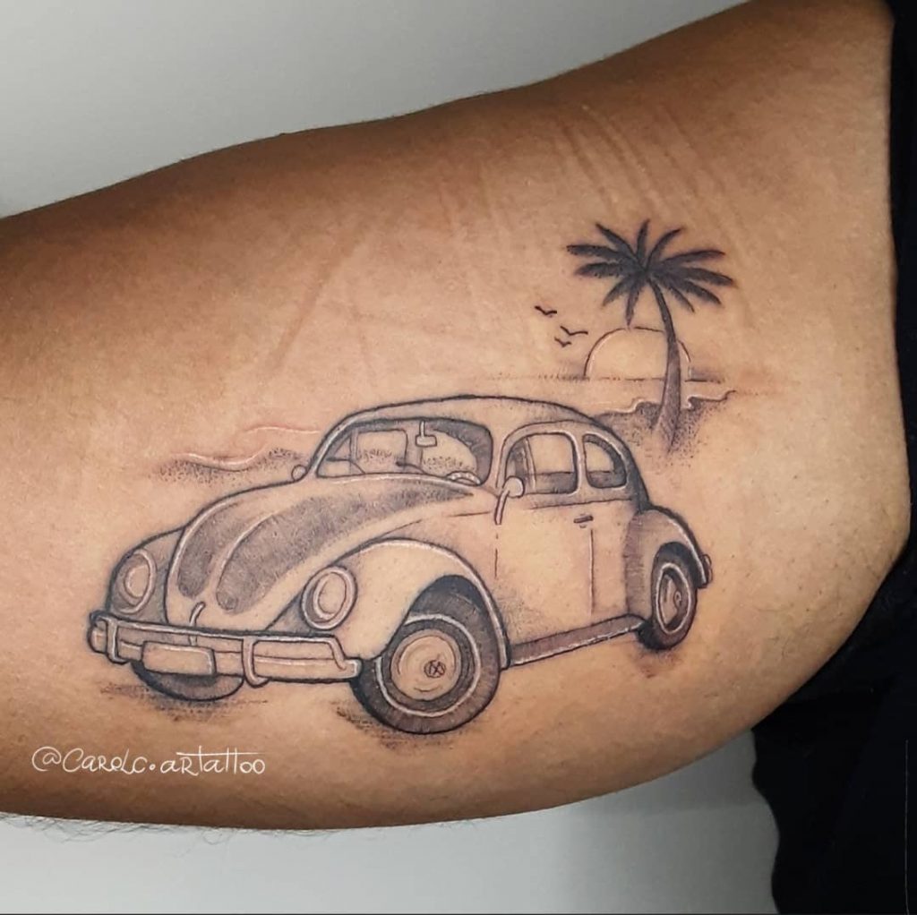 Tattoo de Fusca: Sendo um dos carros mais icônicos da história, o Fusca é uma paixão dos brasileiros!