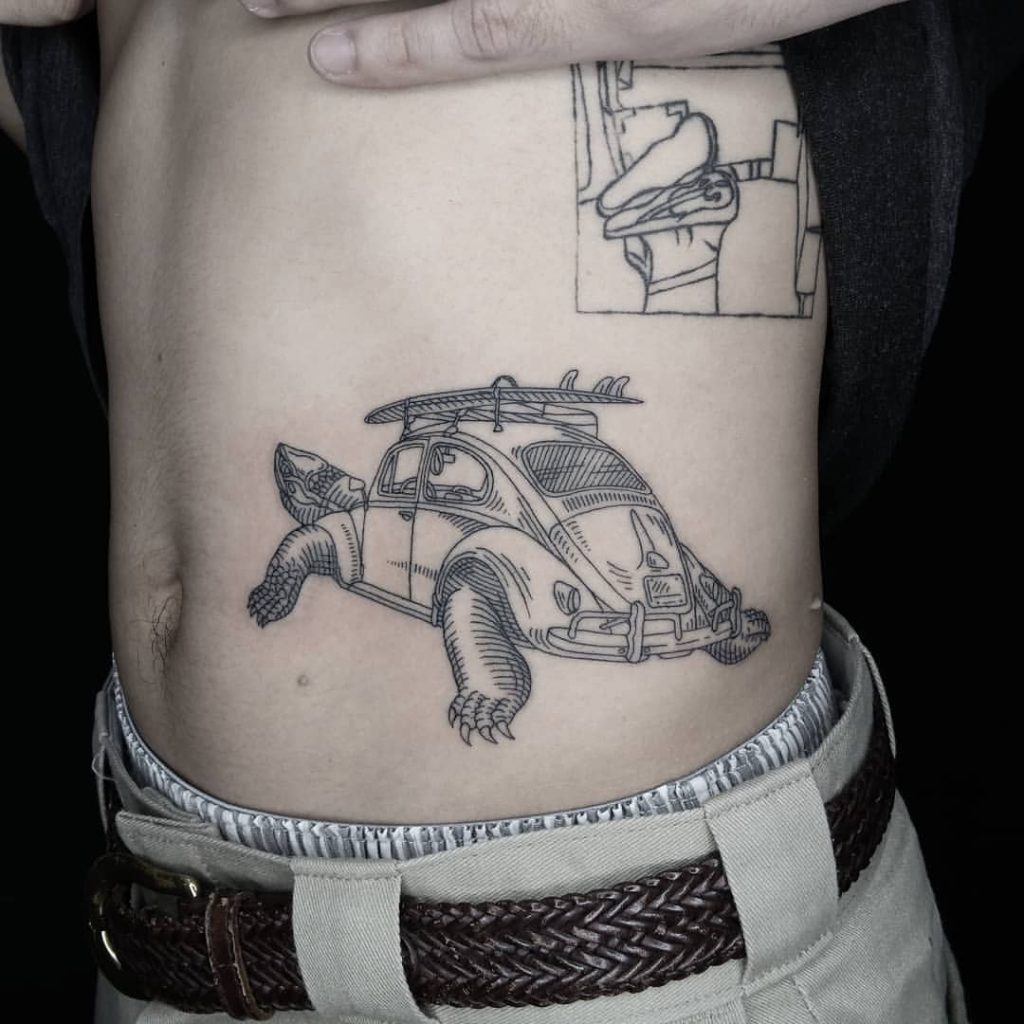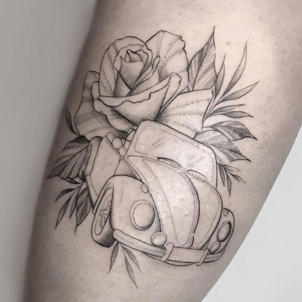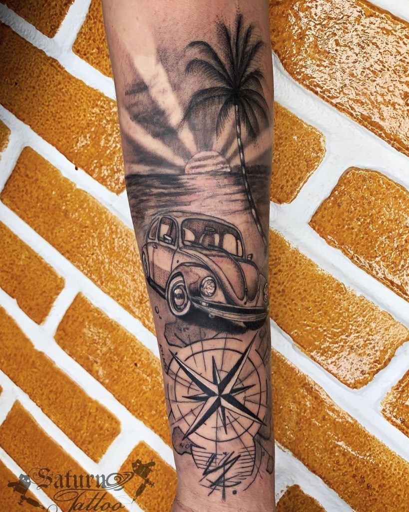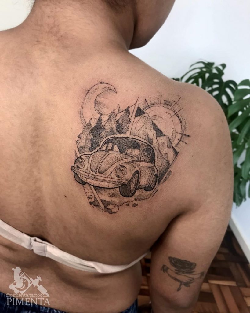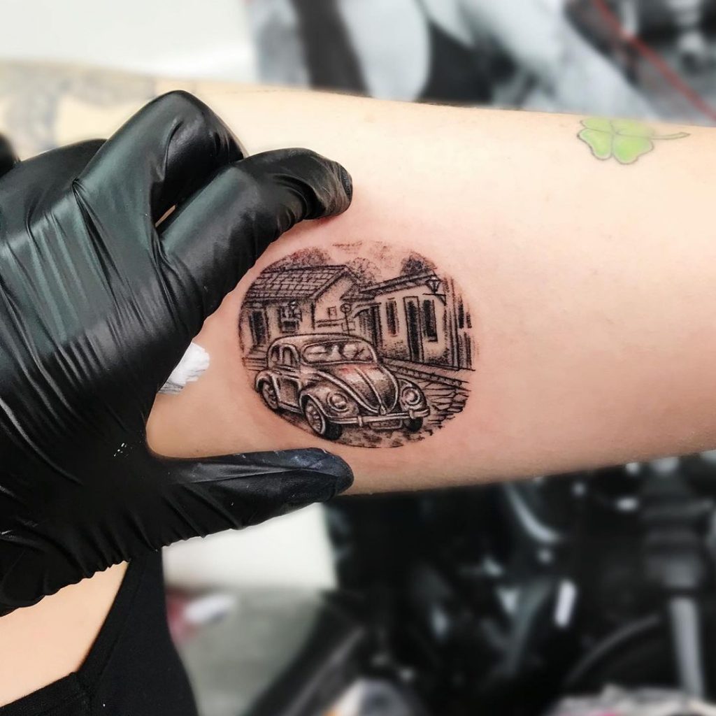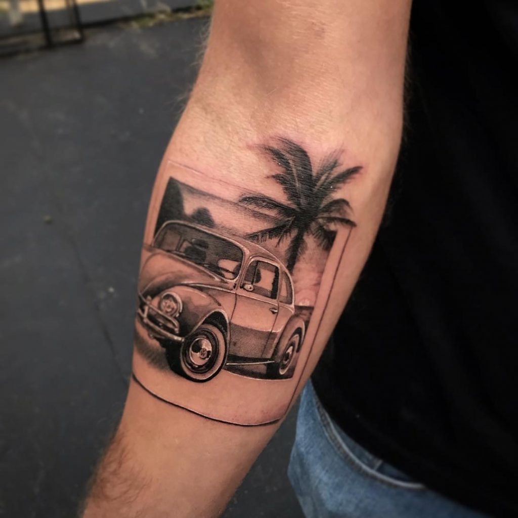 Tattoo de Fusca: Sendo um dos carros mais icônicos da história, o Fusca é uma paixão dos brasileiros!