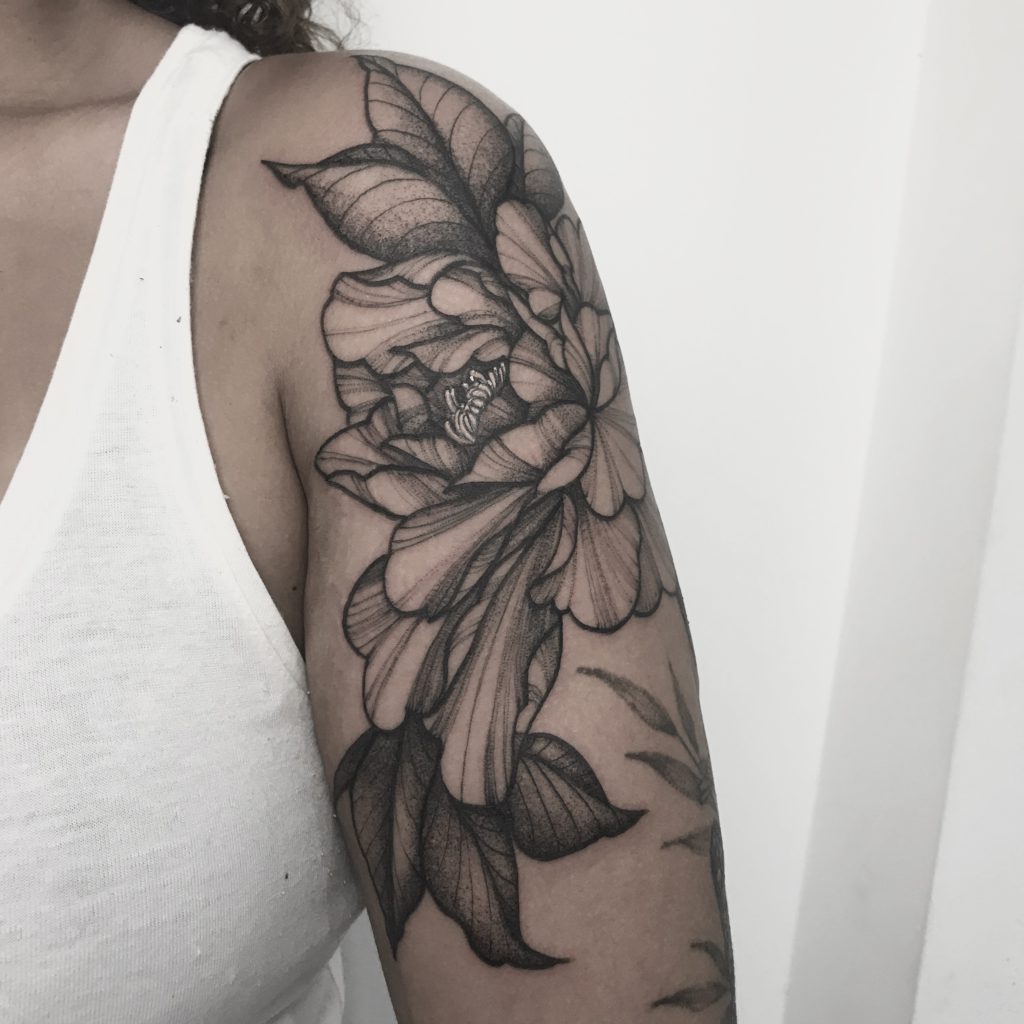 Luiza Boechat produz tatuagens em Blackwork, na maioria das vezes, e atende na cidade do Rio de Janeiro.