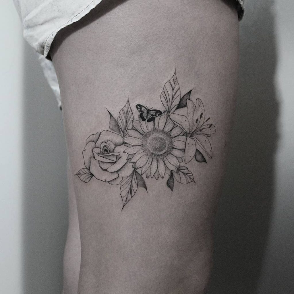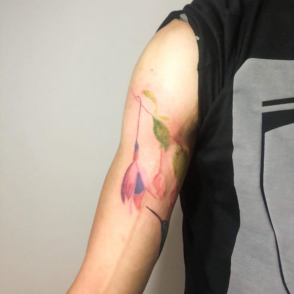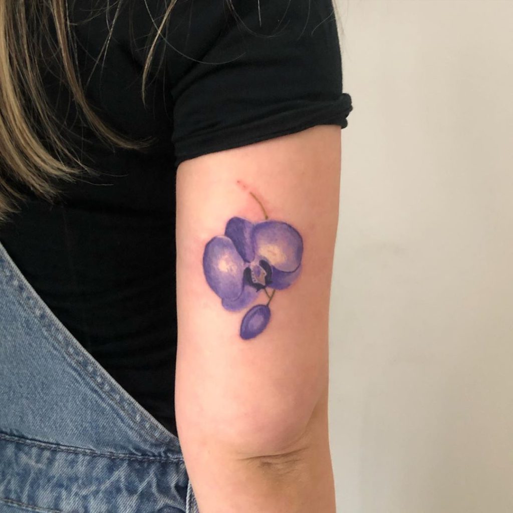 A artista é de Goiânia e faz micro realismos. A artista também manda muito nas tatuagens delicadas, em traço fino e botânicas. Outra marca registrada da artista são suas cores: marcantes nas tatuagens florais ou até mesmo no estilo aquarelado da tatuagem!