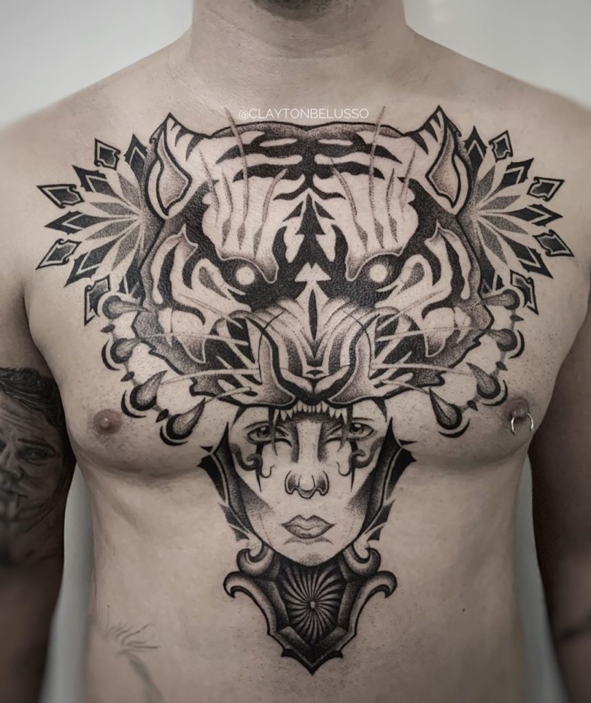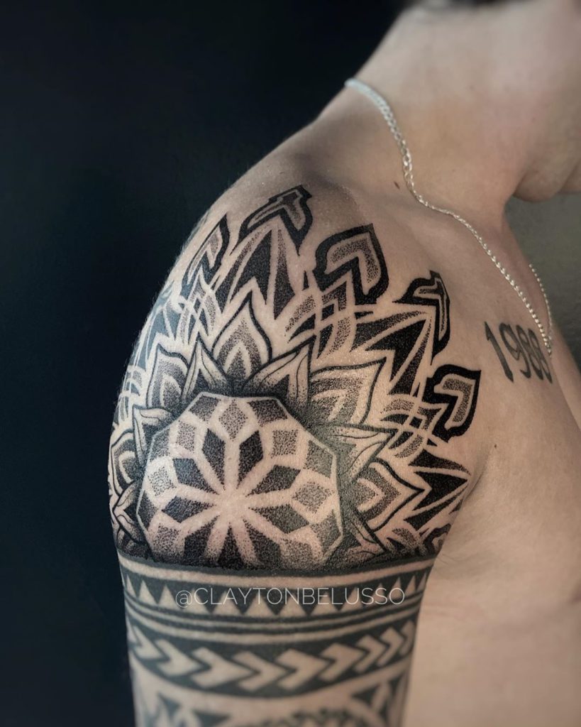 O artista é da cidade de São Paulo e é especialista em tatuagens em Blackwork. Além de mandar muito nas tatuagens tribais e nas mandalas e nas tatuagens ornamentais. Ufa!