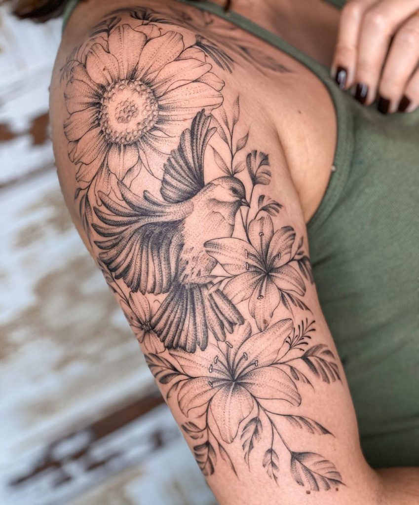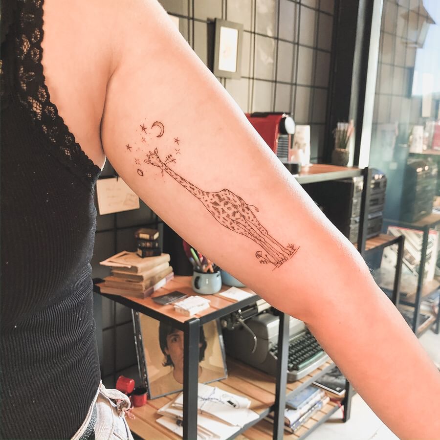 A artista é de Joinville, em Santa Catarina, e seus estilos preferidos são Sketch, Pontilhismo e Fineline. Ela procura sempre que possível mesclar os estilos e deixar o trabalho exclusivo para cada cliente!