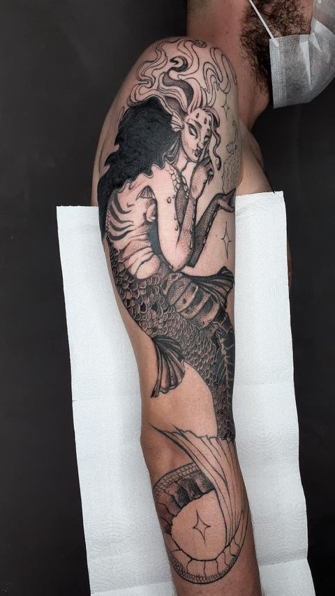 “Sou o Júlio Viana, Tatuador de Hellcife. Trabalhando com tatuagem desde 2014, foi a partir daí que me encontrei na arte, e dai por diante fui me aprimorando e buscando cada vez mais novas técnicas e referências, para expressar meus sentimentos. Residente desde 2019 no @studioartelivre aprendendo sempre com o mestre @leogospel33. Curto bastante tatuar os estilos tradicionais principalmente o Old School, mas sempre transitando em vários outros estilos.”