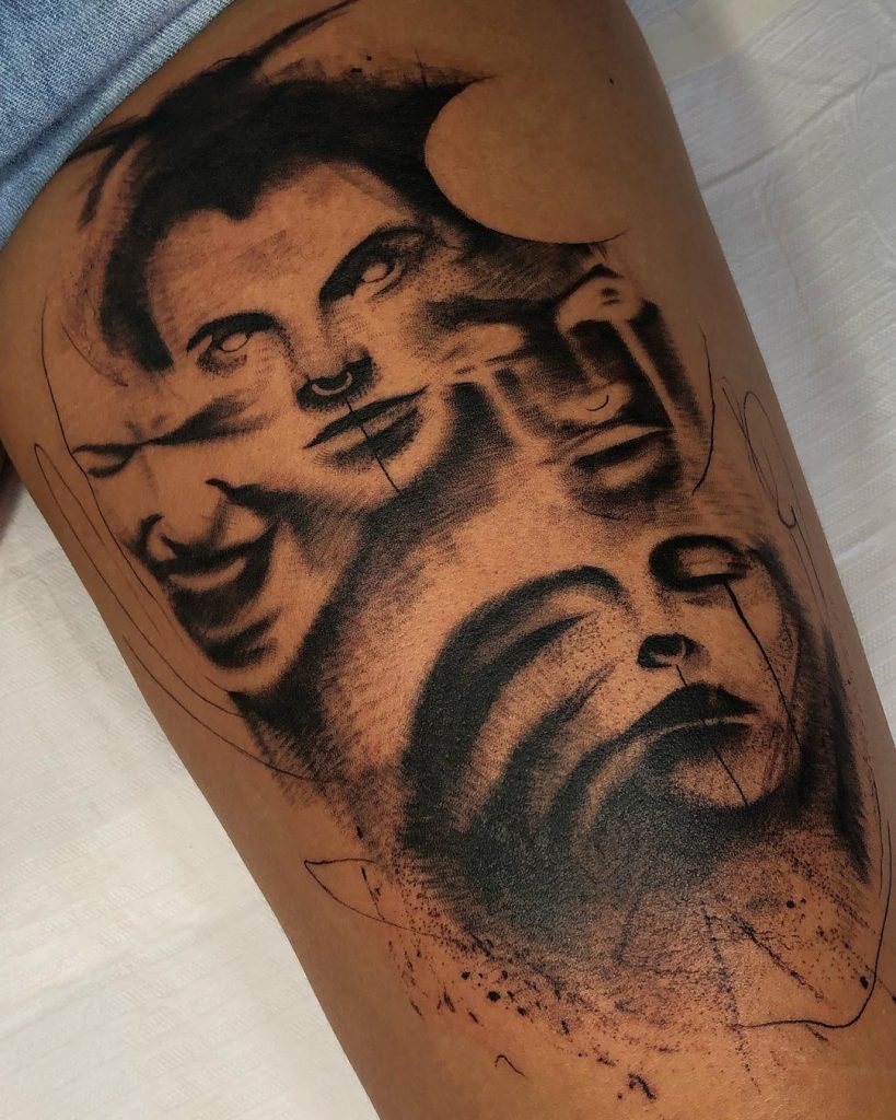 “Me chamo André Viana, sou conhecido como Avimk e sou um dos fundadores do estúdio @ocarvao. Represento sentimentos em meus trabalhos e venho estudando técnicas com carvão vegetal para aplicar na tatuagem. Tento contar histórias através do desenho, juntando um pouco de realismo com formas abstratas, personificando sentimentos e criando tatuagens únicas para cada cliente.”