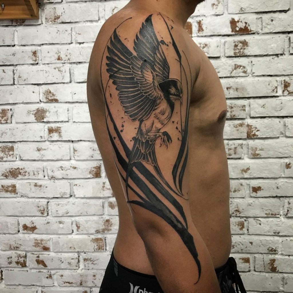 “Me chamo Alex Souza, sou hoje tatuador profissional e iniciei na tatuagem em 2014, sou formado em Design e também sou ilustrador, mas foi na tatuagem que me expressei como artista. Desde o início na tatuagem e acredito que assim como muitos dos colegas, passei por vários estilos diferentes, mas sempre buscando minha própria identidade e algo que eu gostasse de fazer de verdade. E foi misturando blackwork com arte abstrata que me encontrei, e hoje posso dizer que estou criando peças únicas e contando histórias. Atendo com hora marcada e agendamento prévio no meu estúdio privado, dessa forma posso me dedicar melhor a cada desafio, projeto e cliente, sempre com muita responsabilidade e comprometimento com a arte.”