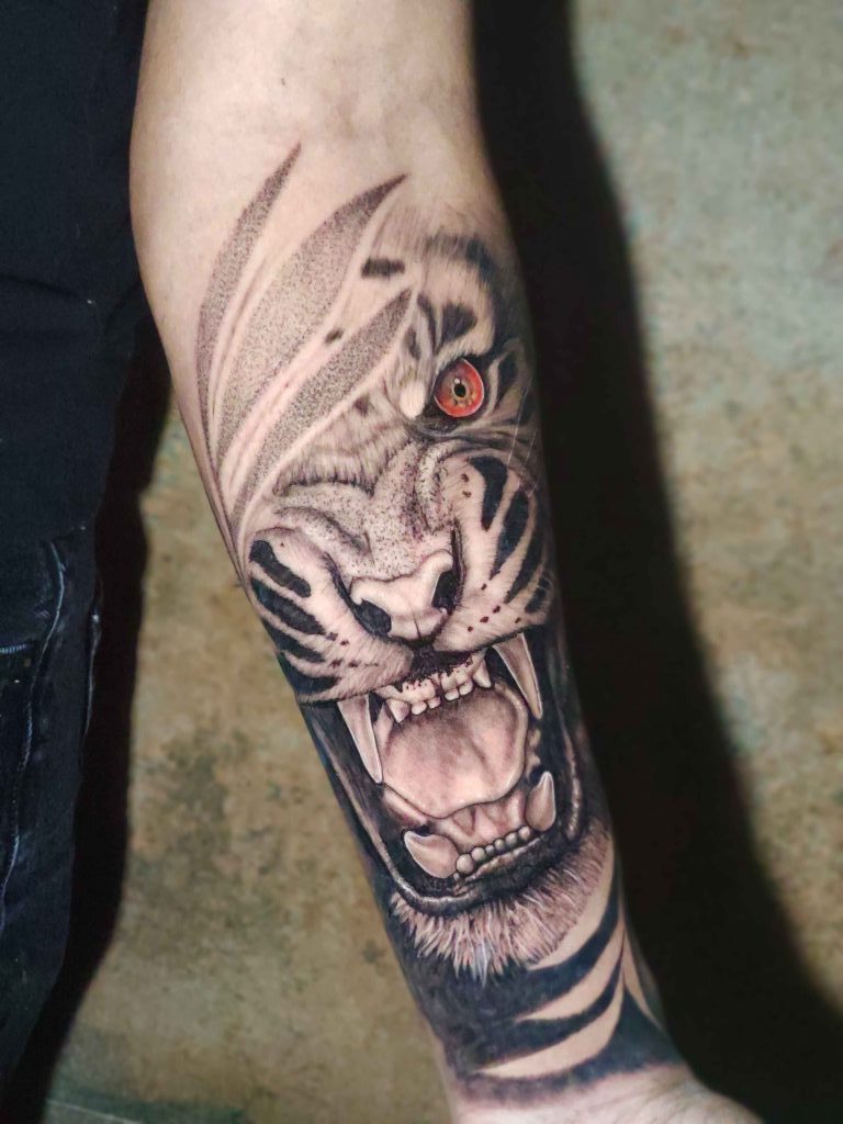 Andrew Iceman: tatuagem realista em Curitiba com alto contraste e acabamento impecável