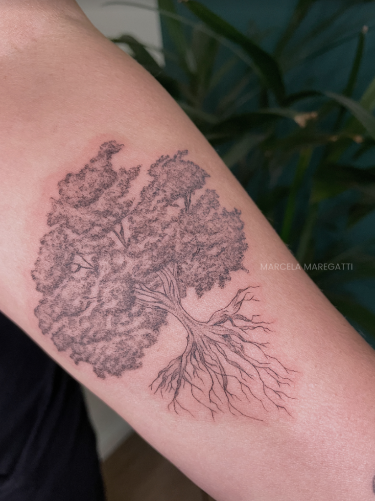 “Prazer, Marcela! Tatuo há 4 anos, mas trabalhar com tatuagem nunca esteve nos meus planos, eu era bancária. Esses caminhos da vida são bem doidos e me levaram a fazer o que eu mais amo nessa vida: conhecer pessoas, trocar experiências e sentir que estou entregando um pouquinho de mim a cada trabalho feito. Amo fazer tatuagens cheias de detalhes e também cheias de história! Meus orçamentos e agendamentos são feitos por formulário, e ele só fica disponível em datas de abertura pré-definidas, fique sempre atenta/o ao insta! :)”