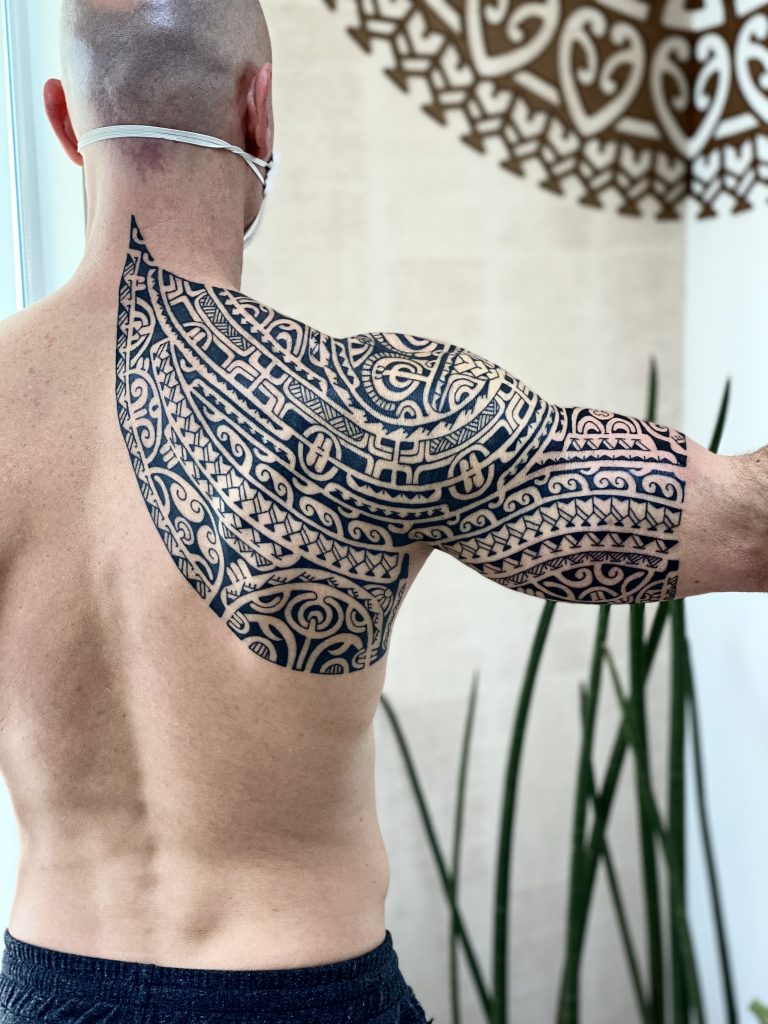 “Me chamo Gustavo, trabalho com tribal desde que comecei a tatuar. Me especializei neste estilo por compactuar com várias filosofias desta cultura, hoje em dia além dos trabalhos autorais. eu vi a oportunidade de fazer mais pela tatuagem. Percebendo que muitos tatuadores não pegam tribais para reformar, decidi me aprofundar neste estilo de reformas de tribais, assim consigo recuperar a auto-estima das pessoas, pois para realizar a reforma você só tem uma chance, se não fizer direito piora ainda mais. A tattoo é mais que somente um desenho na pele! MAHALO 🤙🏼”
