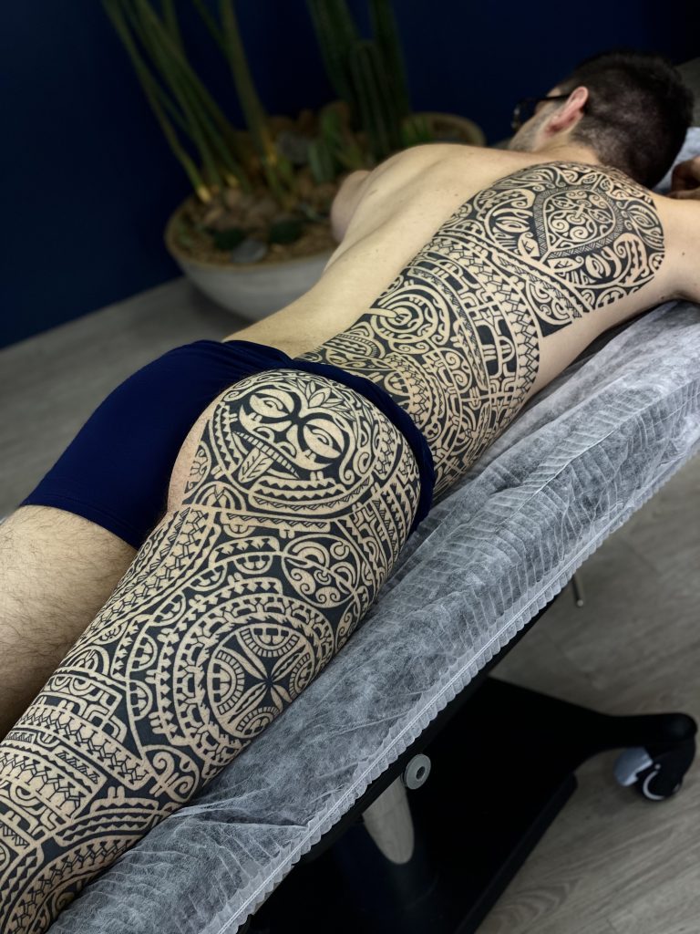 - Tatuagens em blackwork, pontilhismo e tribais;
