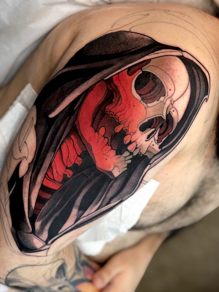 “Me chamo Thiago Moretim, tatuo há 15 anos e estou nos últimos 6 anos em São Caetano do Sul. Temos uma equipe focada em tradicionais e neotradicional, procurando sempre manter os trabalhos bem “limpos” e que forme um bom encaixe no corpo, com isso além de ser uma tatuagem bonita, ela também se torna um adorno.”
