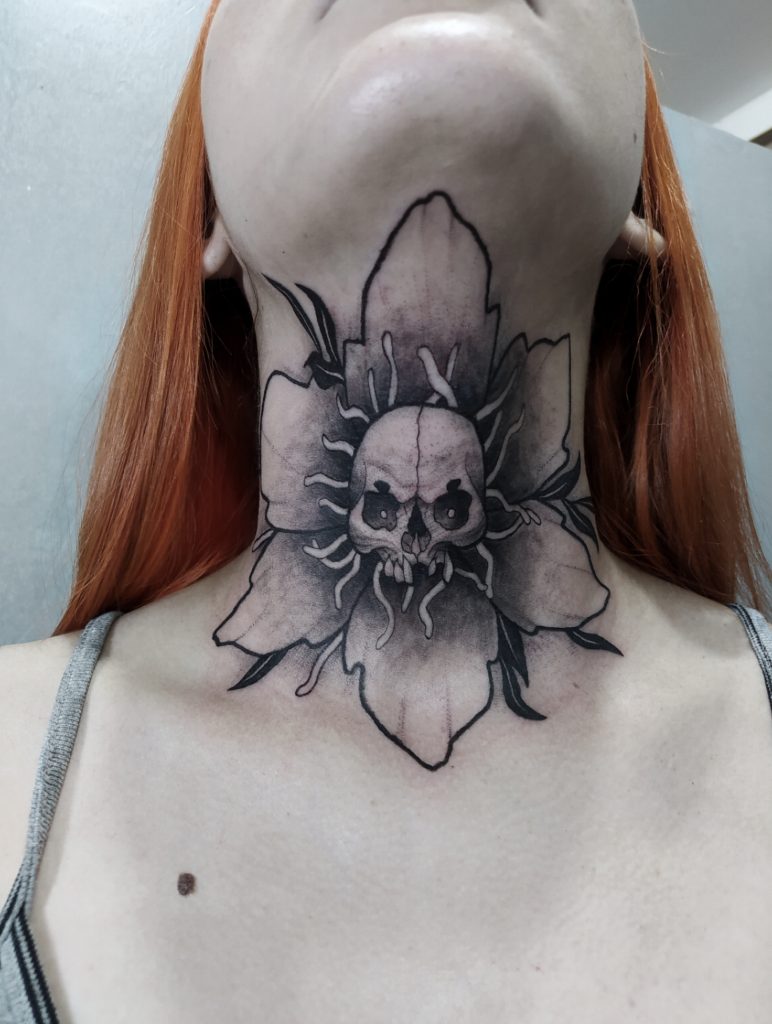 “Me chamo Aline Karen, atuo há 1 ano na tatuagem, gosto muito de preto e cinza e black work que são meus estilos preferidos, porém trabalho com outros estilos! Desejo que meu trabalho seja conhecido em muitos lugares, esse é o meu sonho. Todo dia estudo para minha evolução na tatuagem, pois me esforço sempre para entregar um trabalho muito além do que meus clientes imaginam!”
