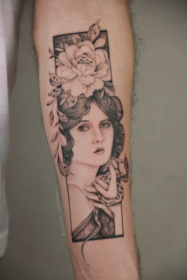 “Nasci no interior de Minas, desde pequena tinha e sensação que nasci para trabalhar com arte. Assim que me formei no Ensino Médio já quis me tornar tatuadora, e esse sonho me fez mudar para Belo Horizonte em busca de mais conhecimento e oportunidades. Hoje, já faz 3 anos desde que iniciei nessa carreira! Meus trabalhos são inspirados em vários artistas brasileiros, na força e na beleza feminina, e sempre com intenção de transformar a sessão da Tattoo em um momento especial pros clientes.”